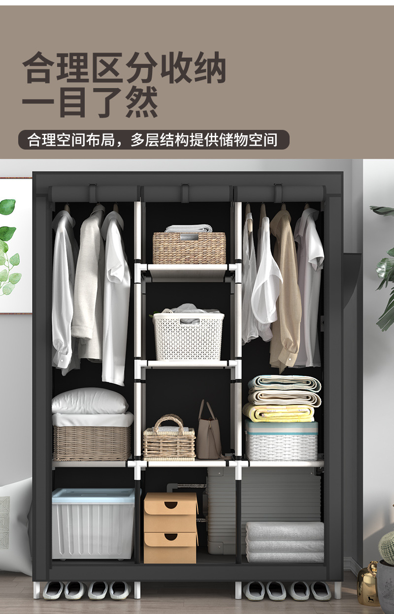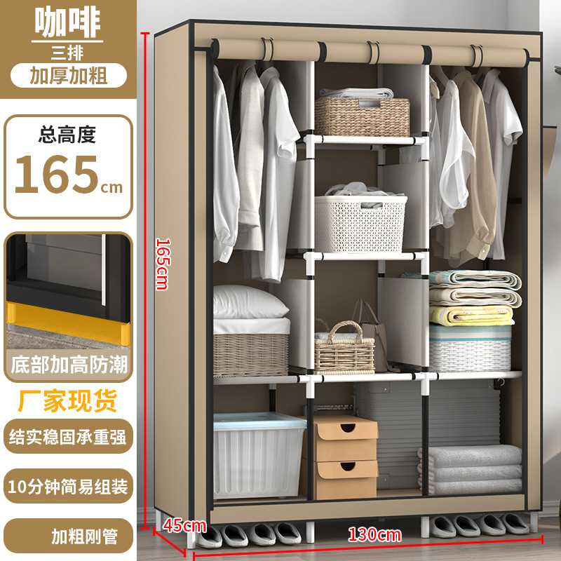 간단한 옷장 3 행 비 짠 직물 조립 옷장 강관 두꺼운 강화 패치 워크 옷장 보관 옷장스토어 가기