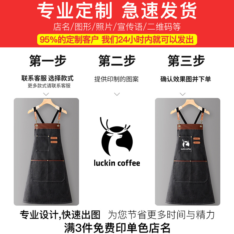 커피 숍 앞치마 주방 가구 2024 새로운 인터넷 인기있는 여름 맞춤 로고 인쇄 여성을위한 요리 작업 옷