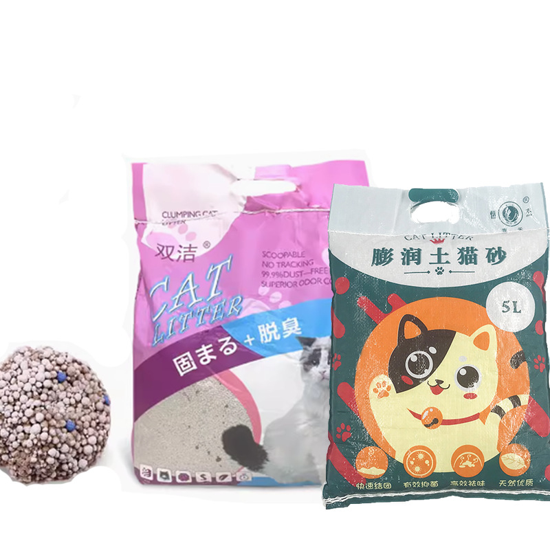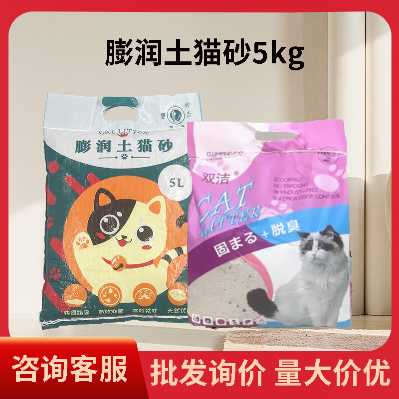 Shuangjie 벤토나이트 고양이 쓰레기 5kg 덩어리 탈취제 낮은 먼지 비 스틱 바닥 그물 냄새 고양이 깨끗한 토양 쓰레기 도매