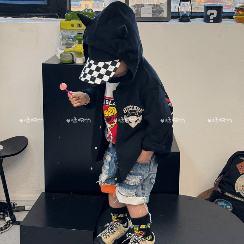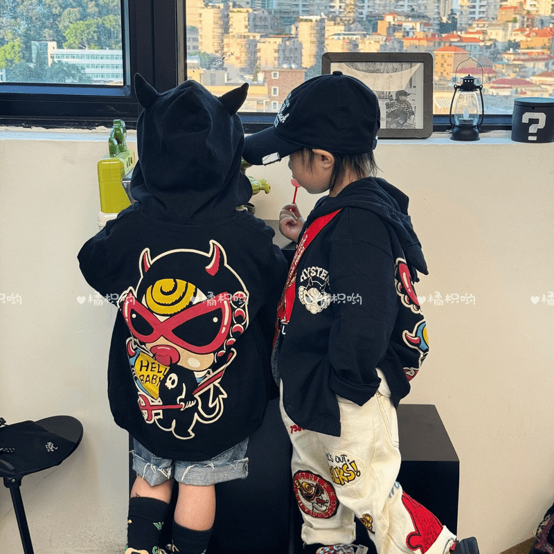 2024 봄과 가을 외국 스타일의 후드 조끼를 가진 남녀를위한 새로운 아동복 아기 유치원 카디건 코트스토어 가기