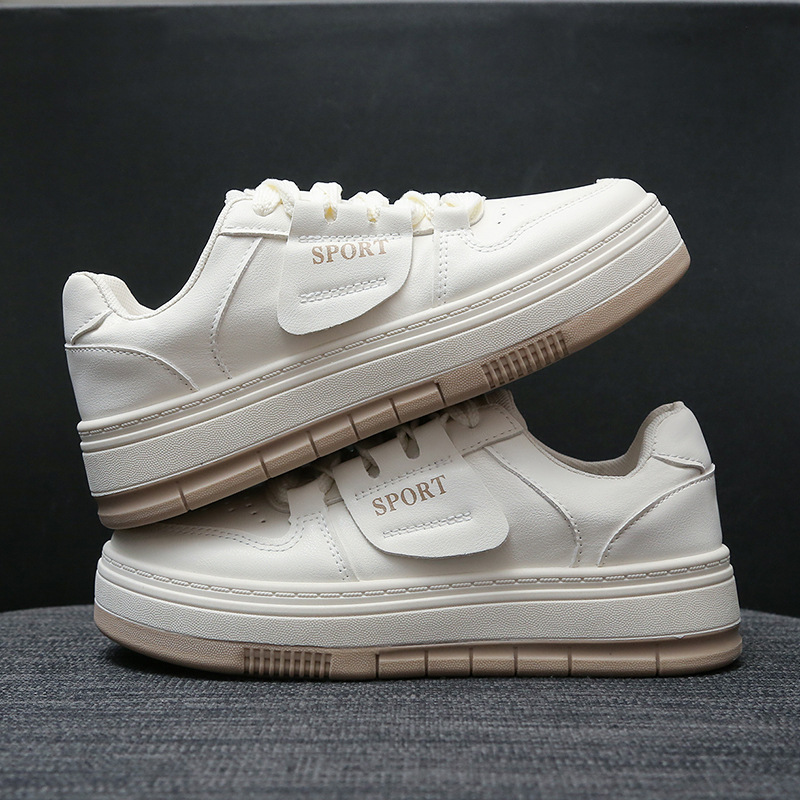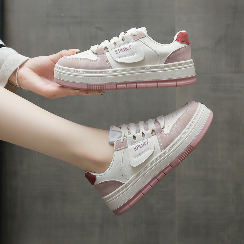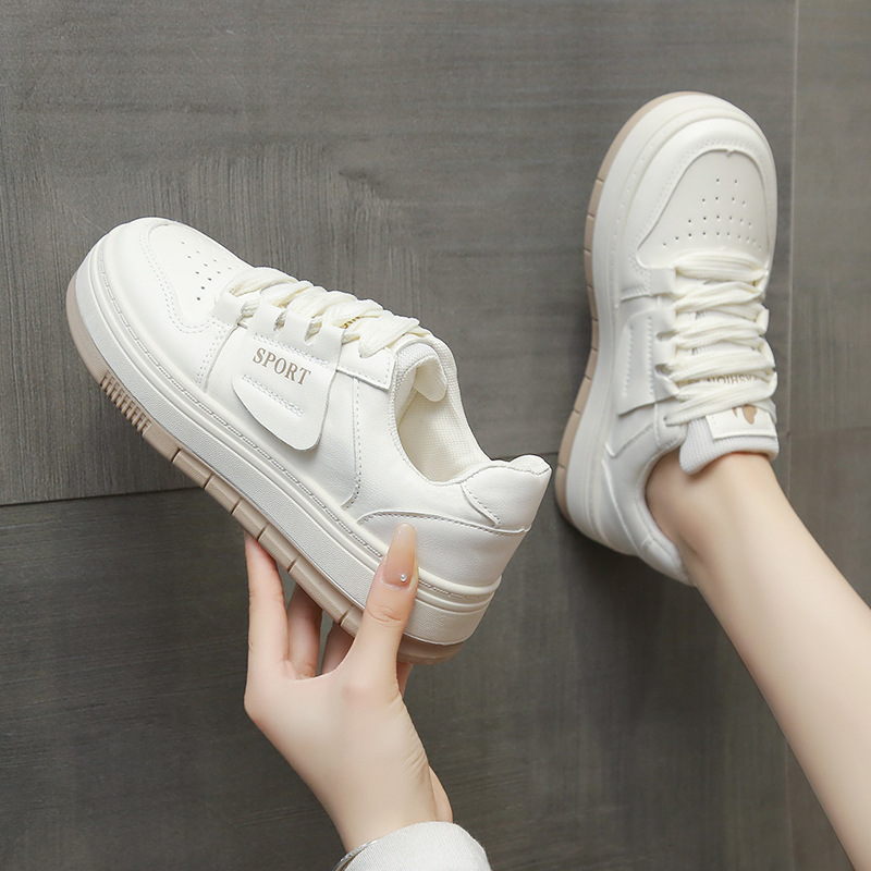 캠퍼스 스타일 화이트 신발 여성의 2024 새로운 가을 라운드 발가락 운동화 학생 올 매치 캐주얼 큰 발가락 빵 신발스토어 가기