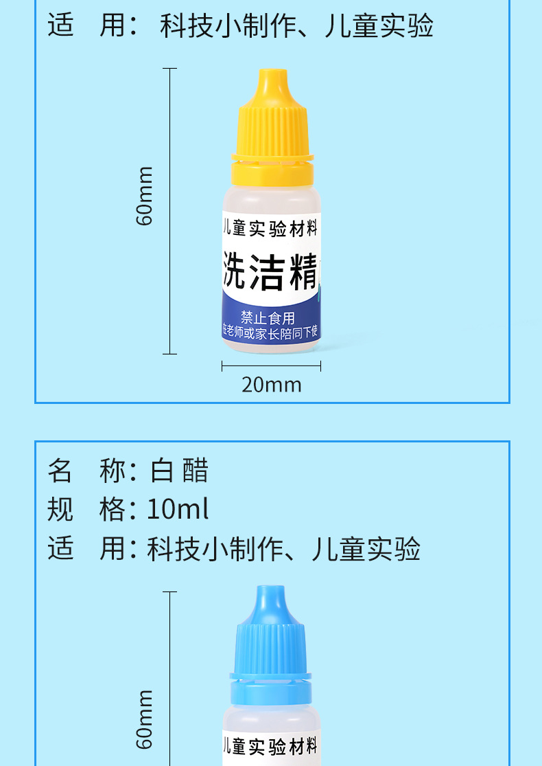 어린이 과학 실험 재료 실험 오일 iodophor 화이트 식초 세제 수제 재료 작은 발명 기술 작은 생산스토어 가기
