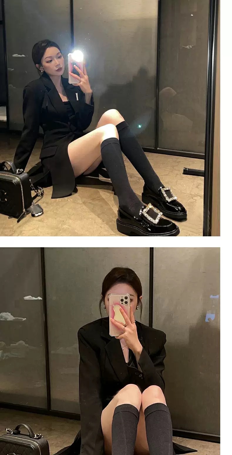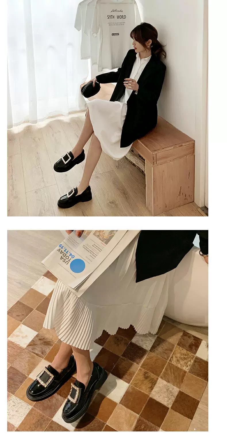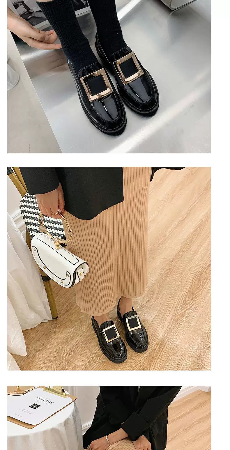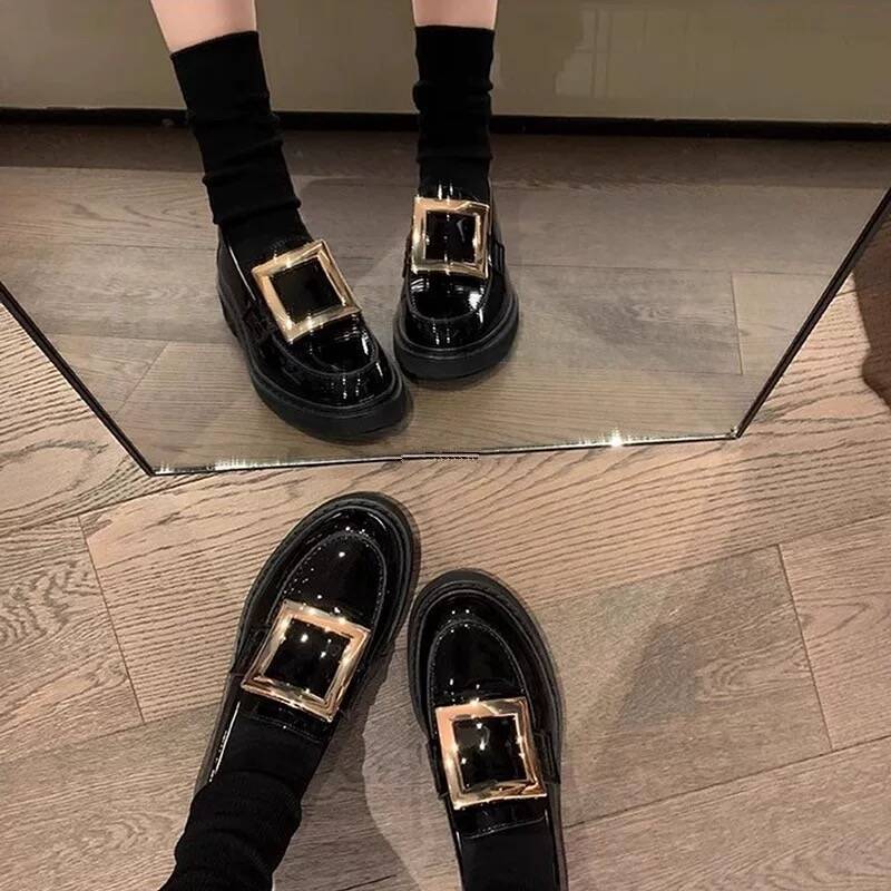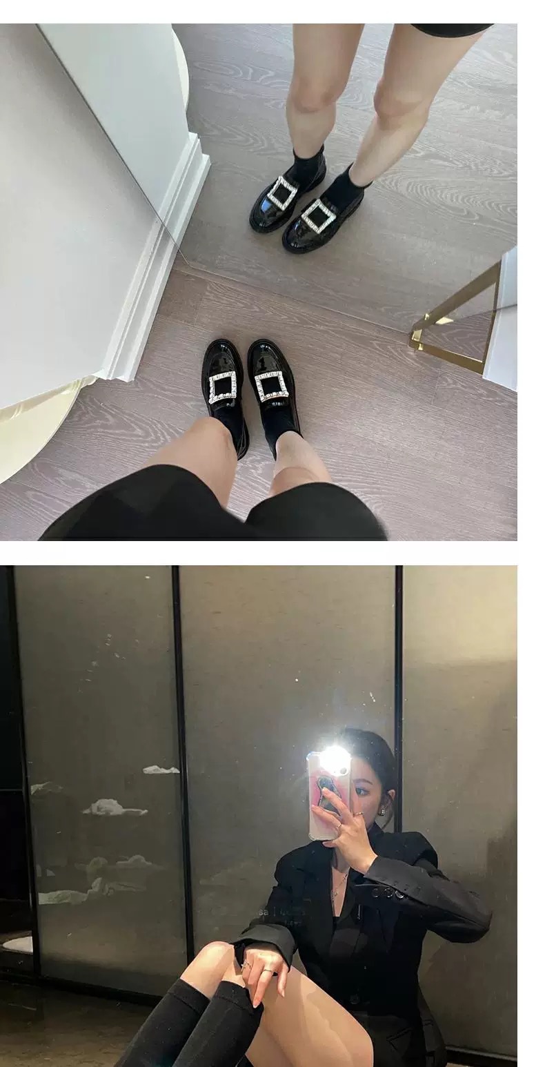 명사계열 스타일~R 여성화 스퀘어 버클 로퍼 여성용 봄 가을 두꺼운 밑창 영국풍 페이턴트 가죽 작은 가죽 신발 워터 다이아몬드 단화