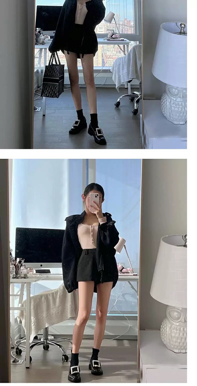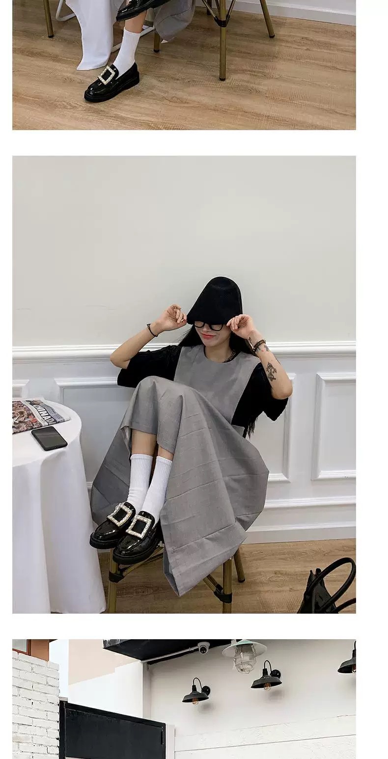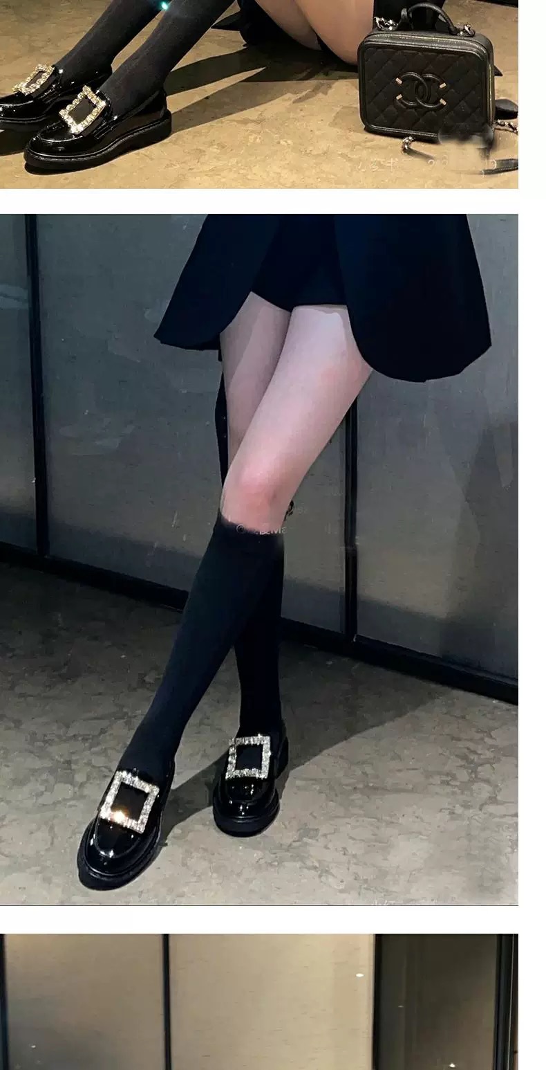명사계열 스타일~R 여성화 스퀘어 버클 로퍼 여성용 봄 가을 두꺼운 밑창 영국풍 페이턴트 가죽 작은 가죽 신발 워터 다이아몬드 단화스토어 가기