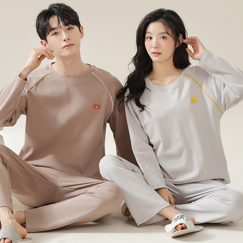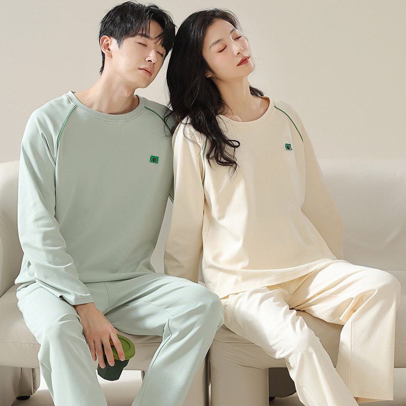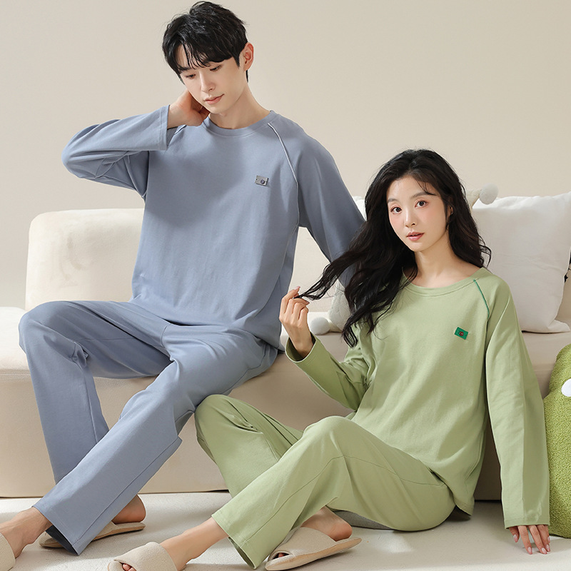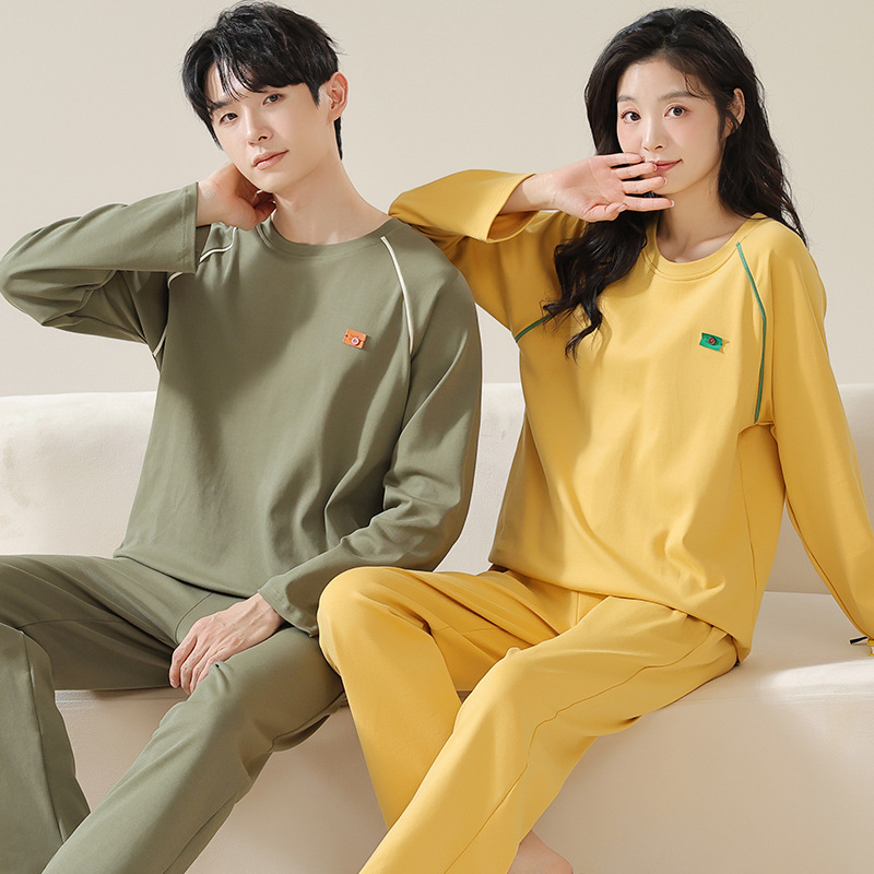 가을 겨울 여성용 면 100% 잠옷, 커플용 긴팔 바지, 풀오버, 캐주얼, 웨어러블, 남성용 홈웨어 세트스토어 가기
