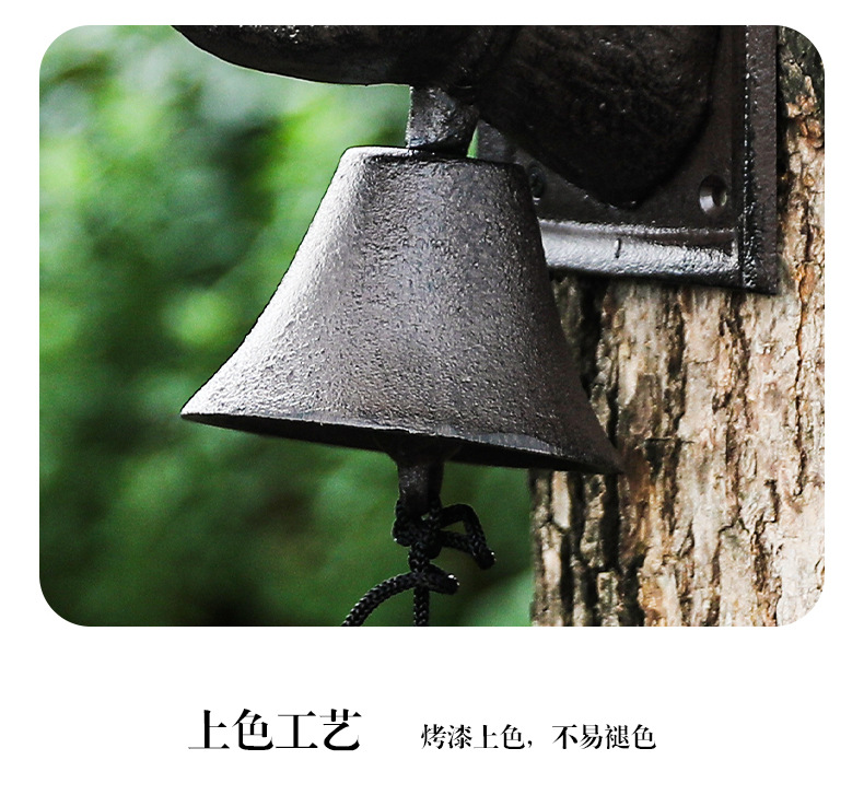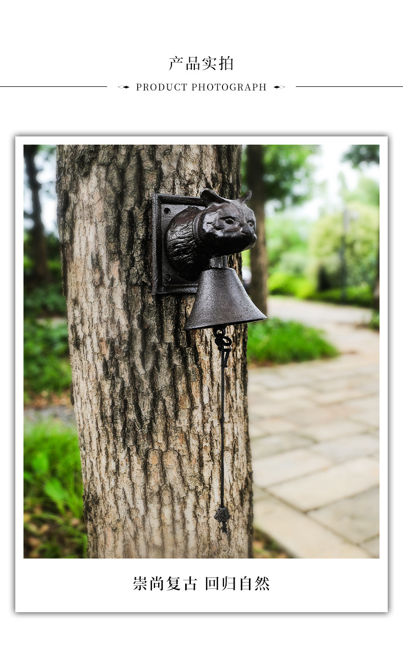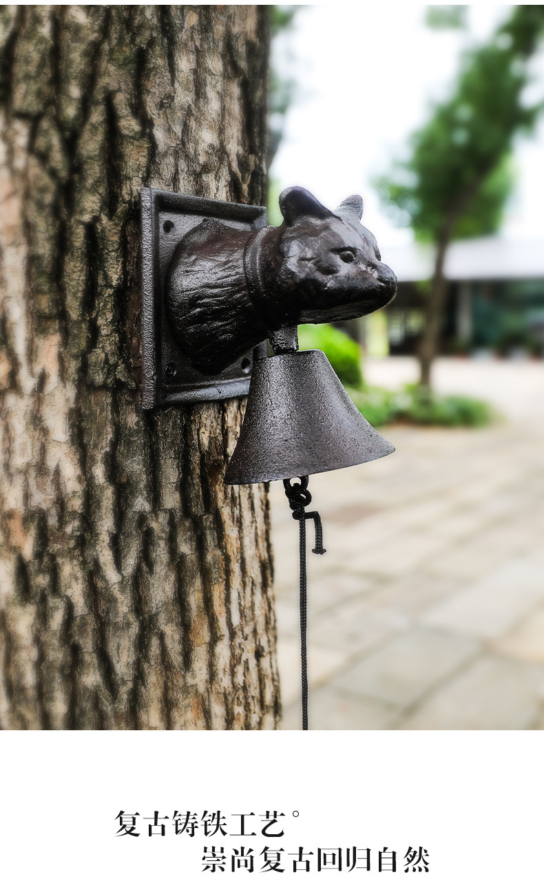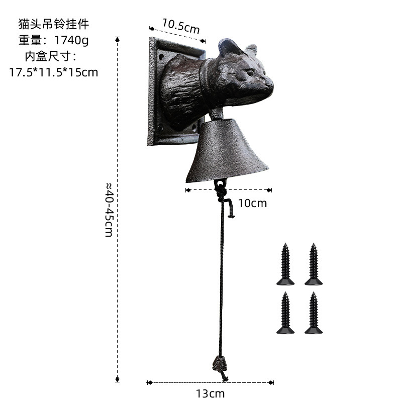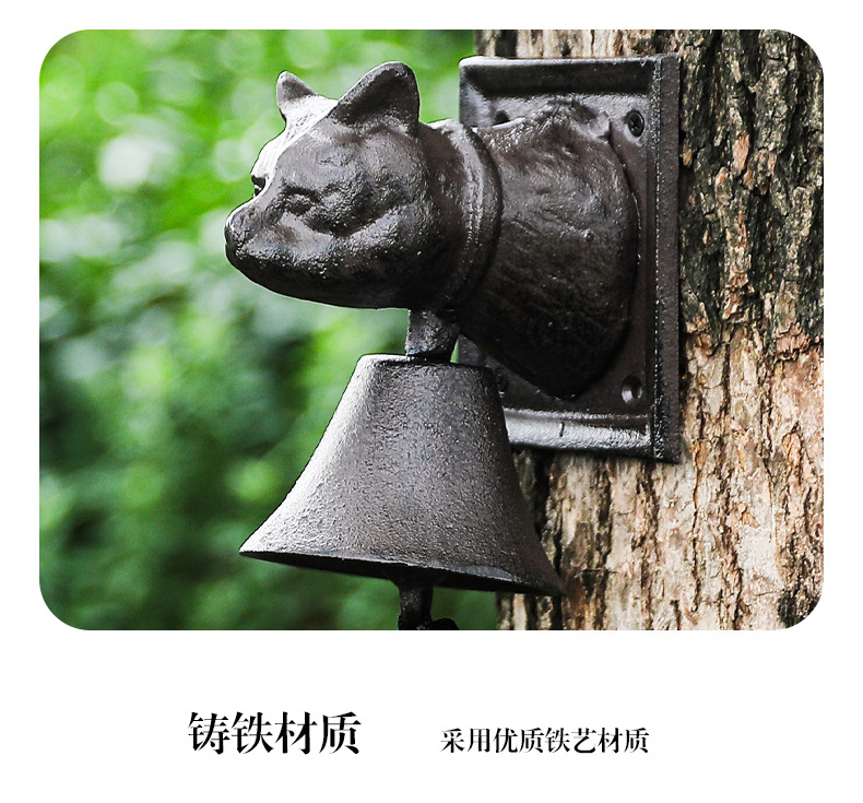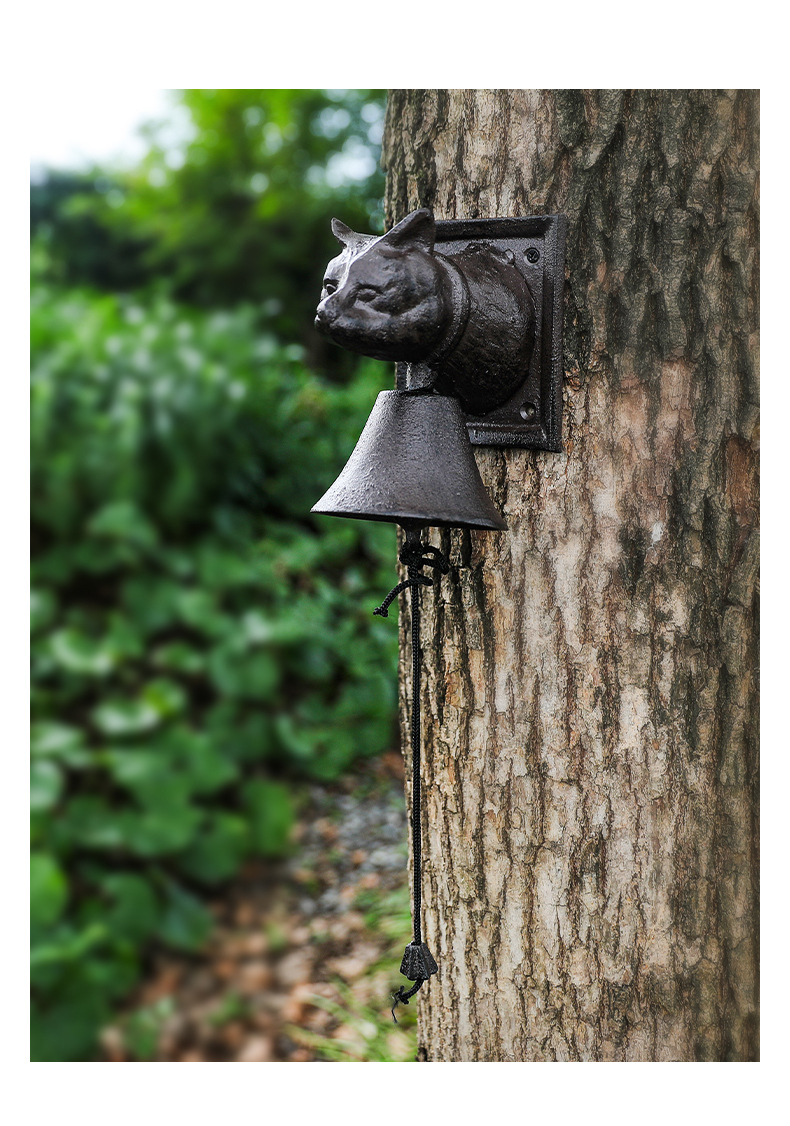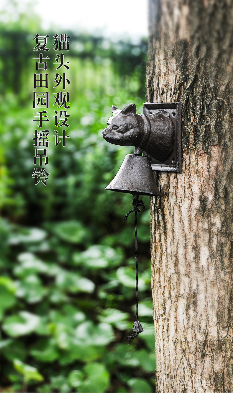 유럽 스타일 복고풍 주철 고양이 머리 문 벽 장식을위한 초인종 벽에 걸려있는 손 딸랑이 벨 장식을위한 시계 펜던트스토어 가기