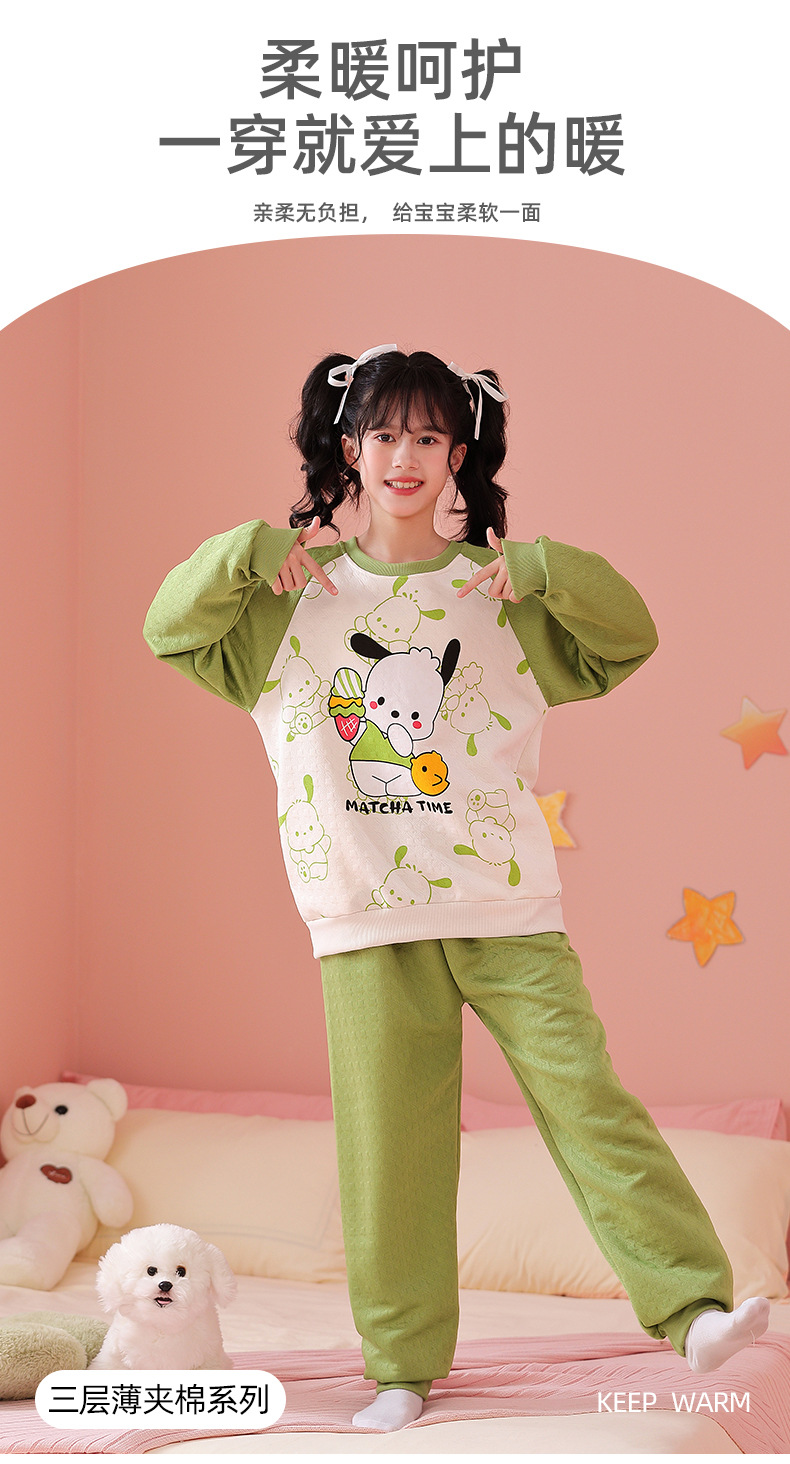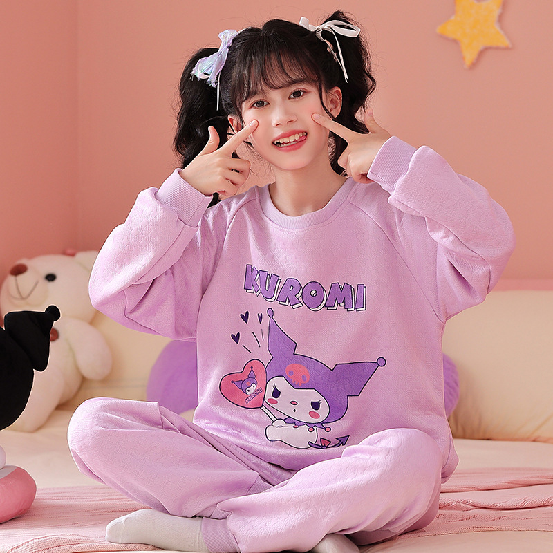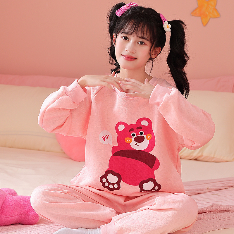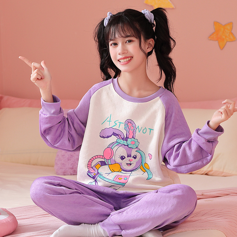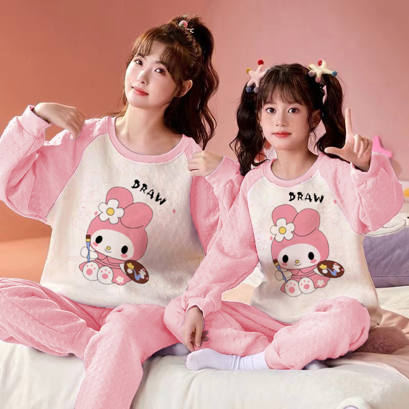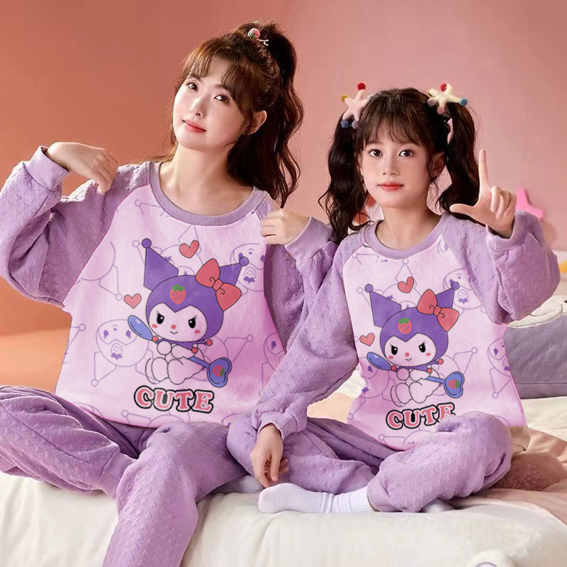 엄마와 딸 어린이 잠옷 가을과 겨울 소녀 공기 면 두꺼운 샌드위치 긴팔 홈 옷 세트 입고스토어 가기