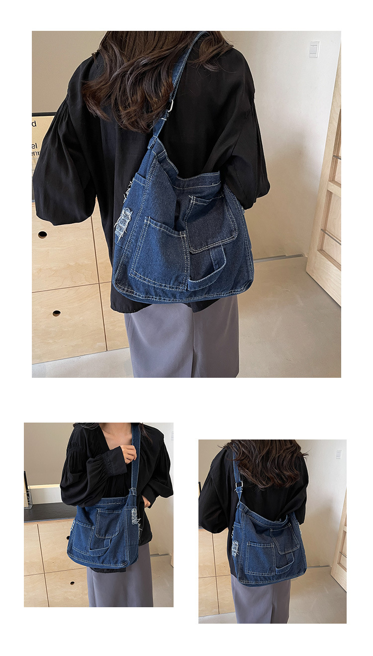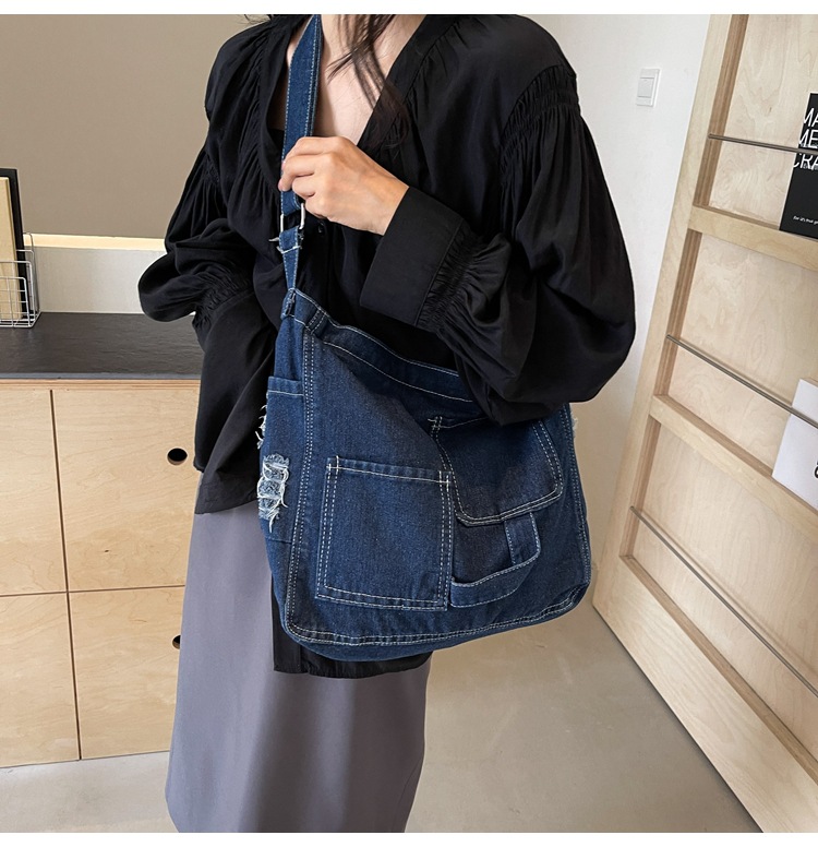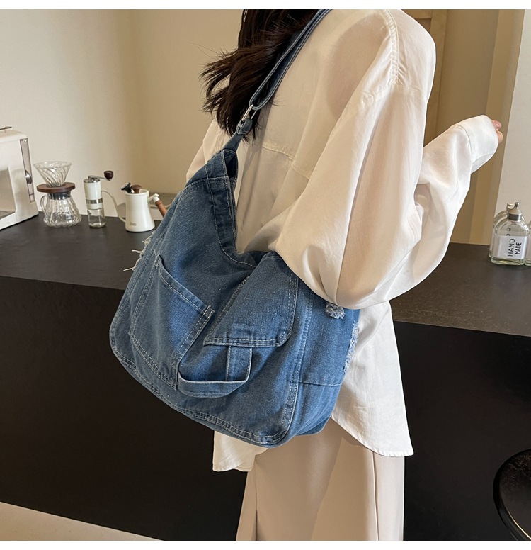 2024 새로운 빈티지 대용량 가방 여성용 토트 백 인기있는 데님 숄더 백 학생 클래스 크로스 바디 백