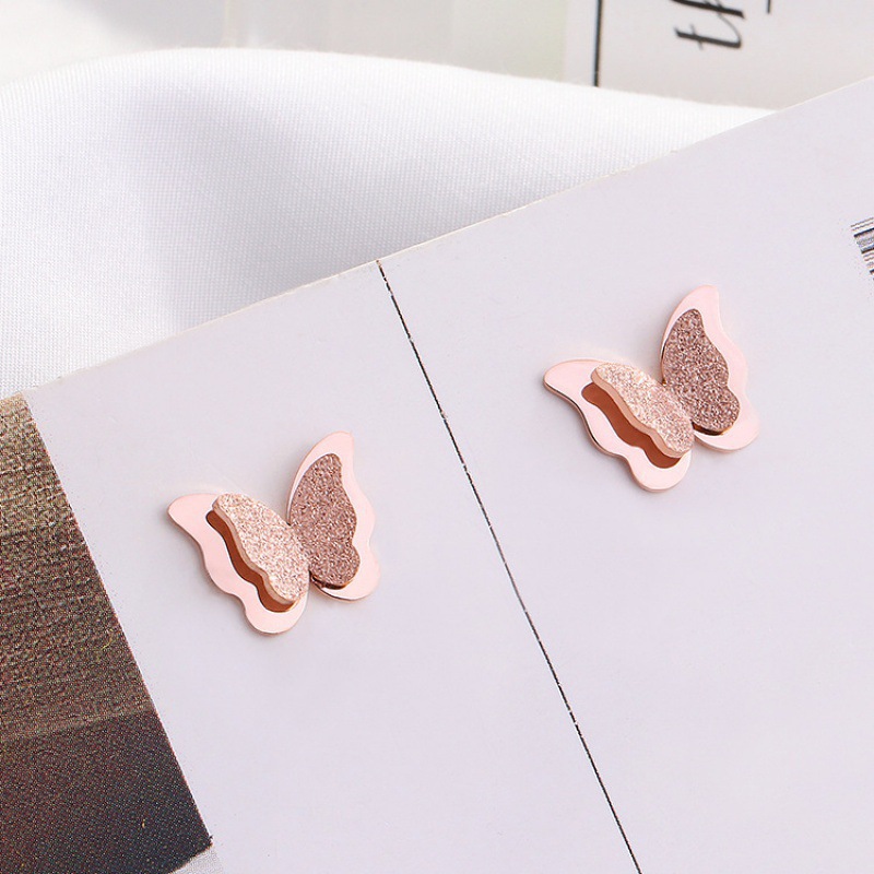 티타늄 스틸 안티 페이드 매트 나비 귀걸이 한국 패션 18k 로즈 골드 도금 스테인레스 스틸 귀걸이 보석 도매스토어 가기