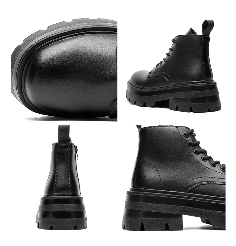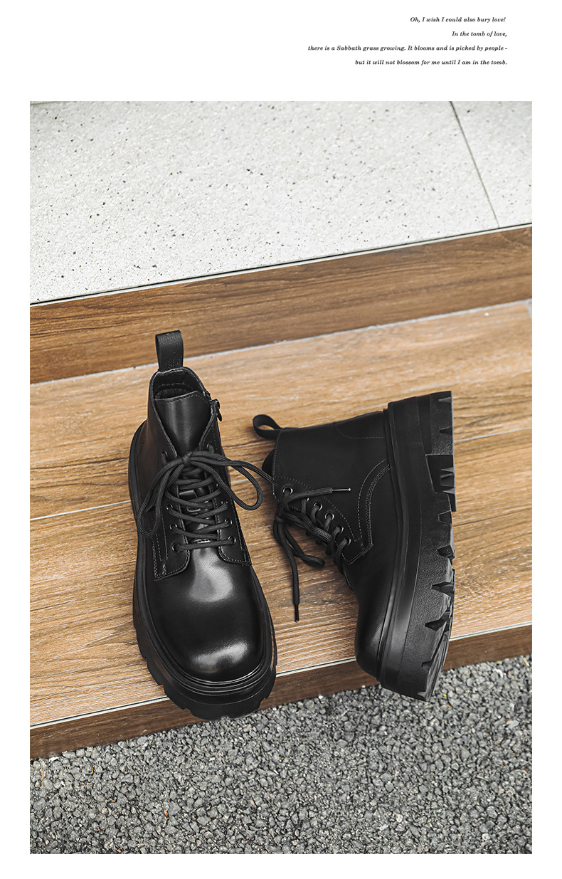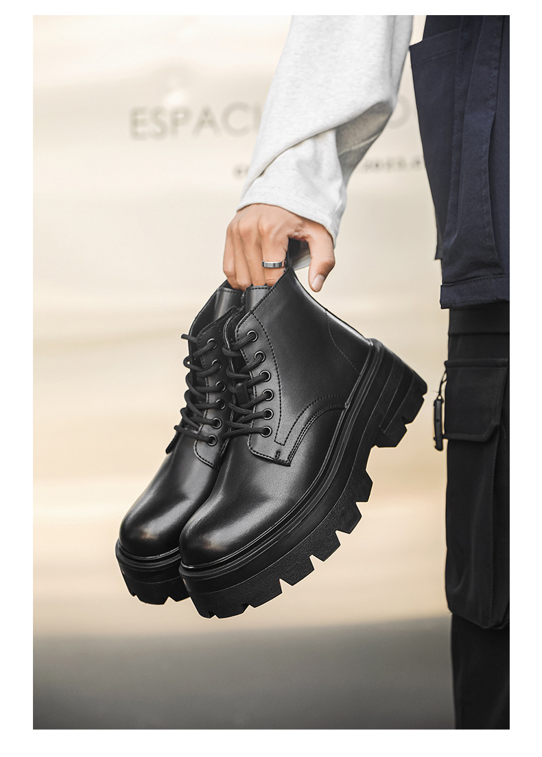 영국 스타일 2024 새로운 남성 신발 봄과 가을 캐주얼 큰 발가락 가죽 부츠 두꺼운 단독 높이 증가 하이 탑 가죽 신발 마틴 부츠스토어 가기