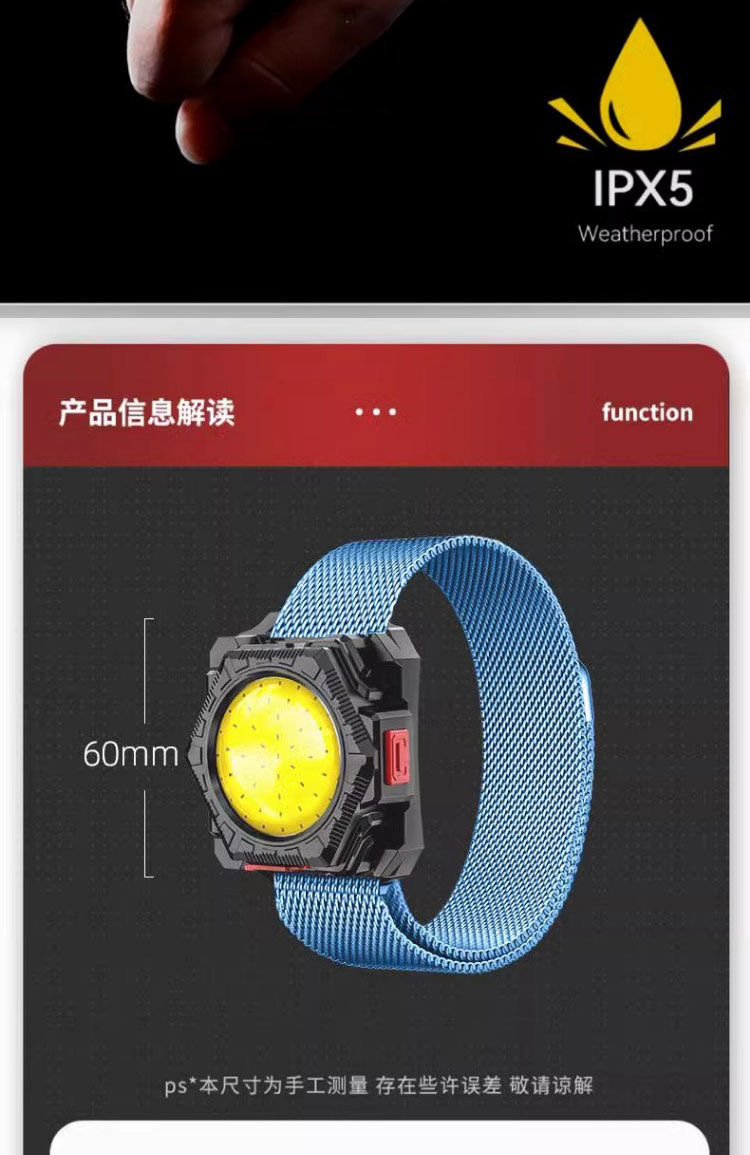 강력한 손전등 다기능 야외 야간 실행 허리 팩 손목 붉은 빛 비상 충전 휴대용 미니 슈퍼 밝은 헤드라이트