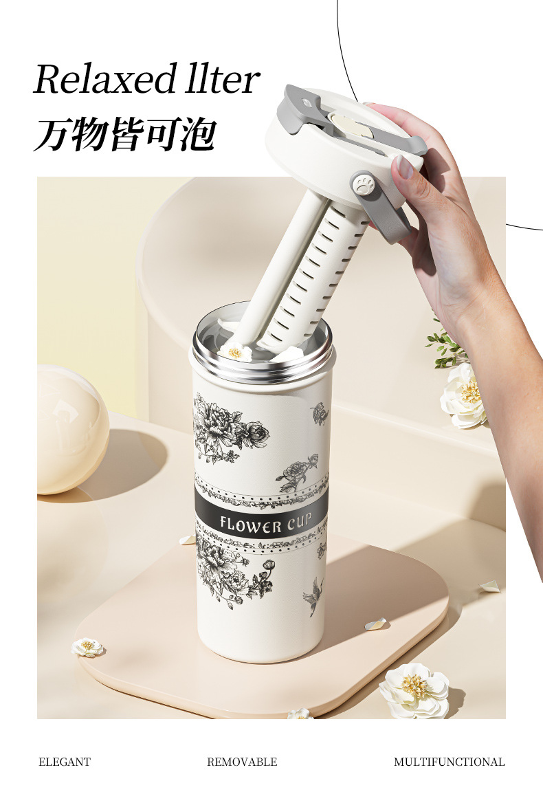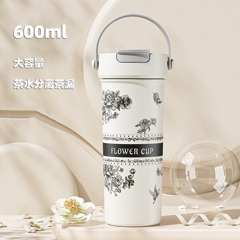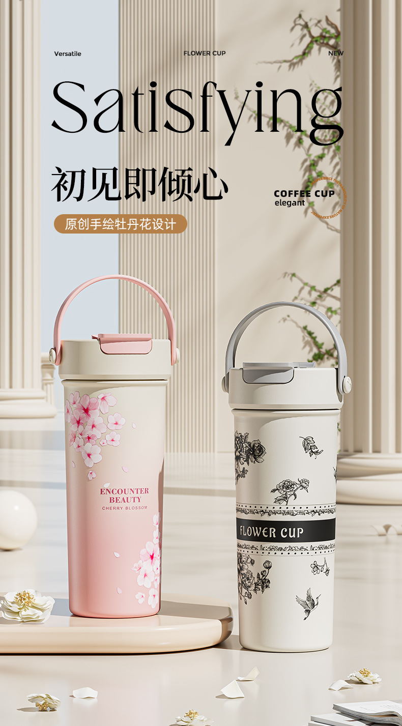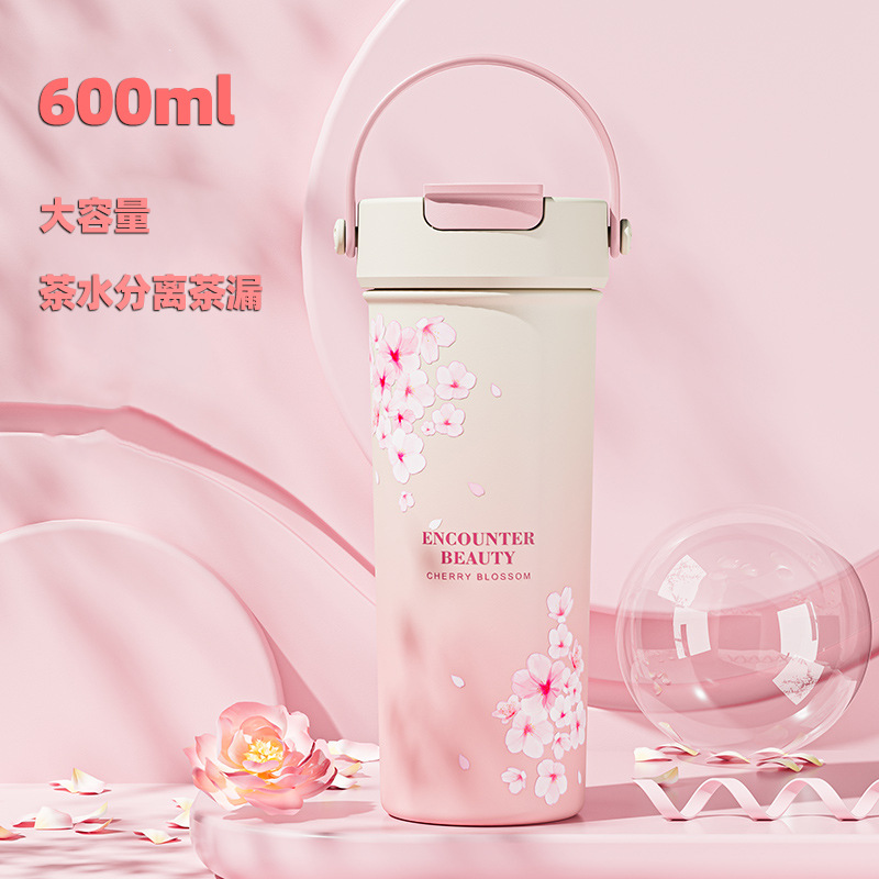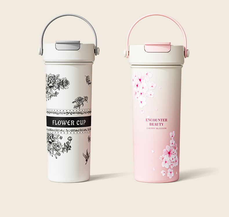 벚꽃 2024 새로운 스타일 보온병 여성의 꽃 티 컵 높은 색상 가치 커피 컵 대용량 밀짚 워터 컵 선물
