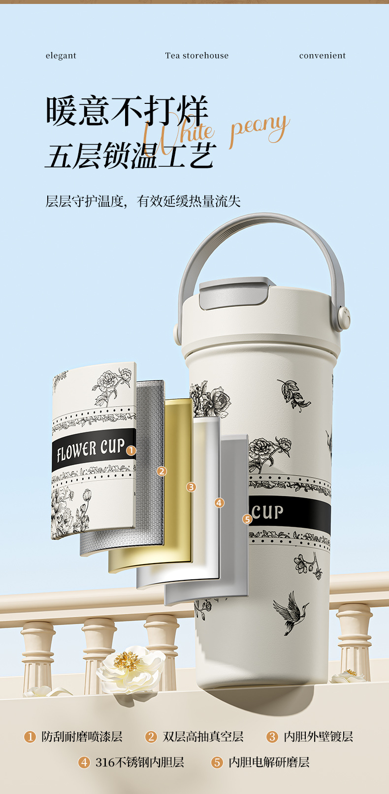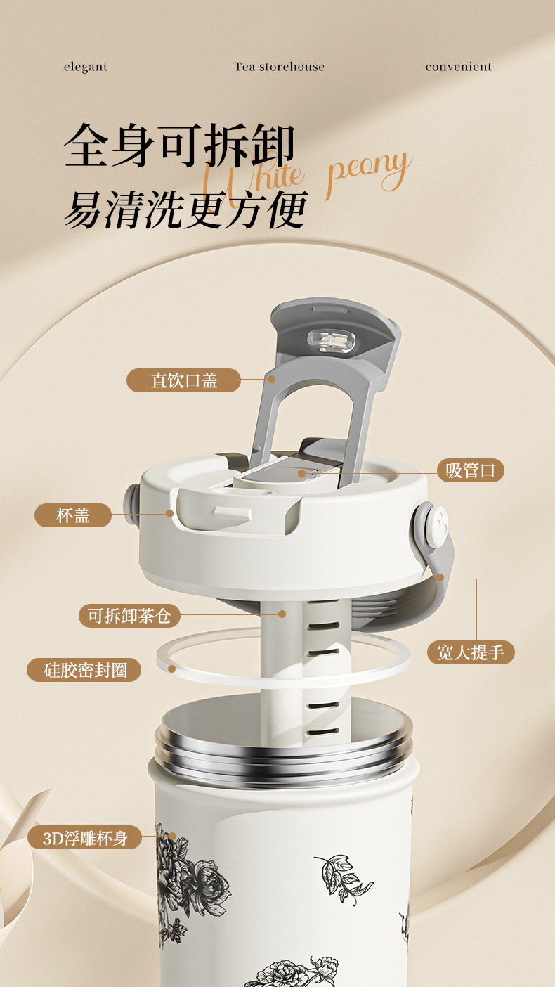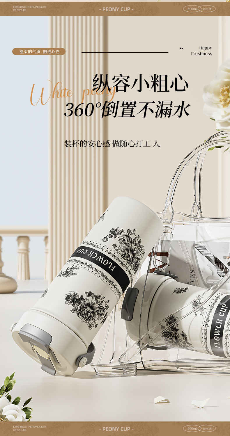 벚꽃 2024 새로운 스타일 보온병 여성의 꽃 티 컵 높은 색상 가치 커피 컵 대용량 밀짚 워터 컵 선물