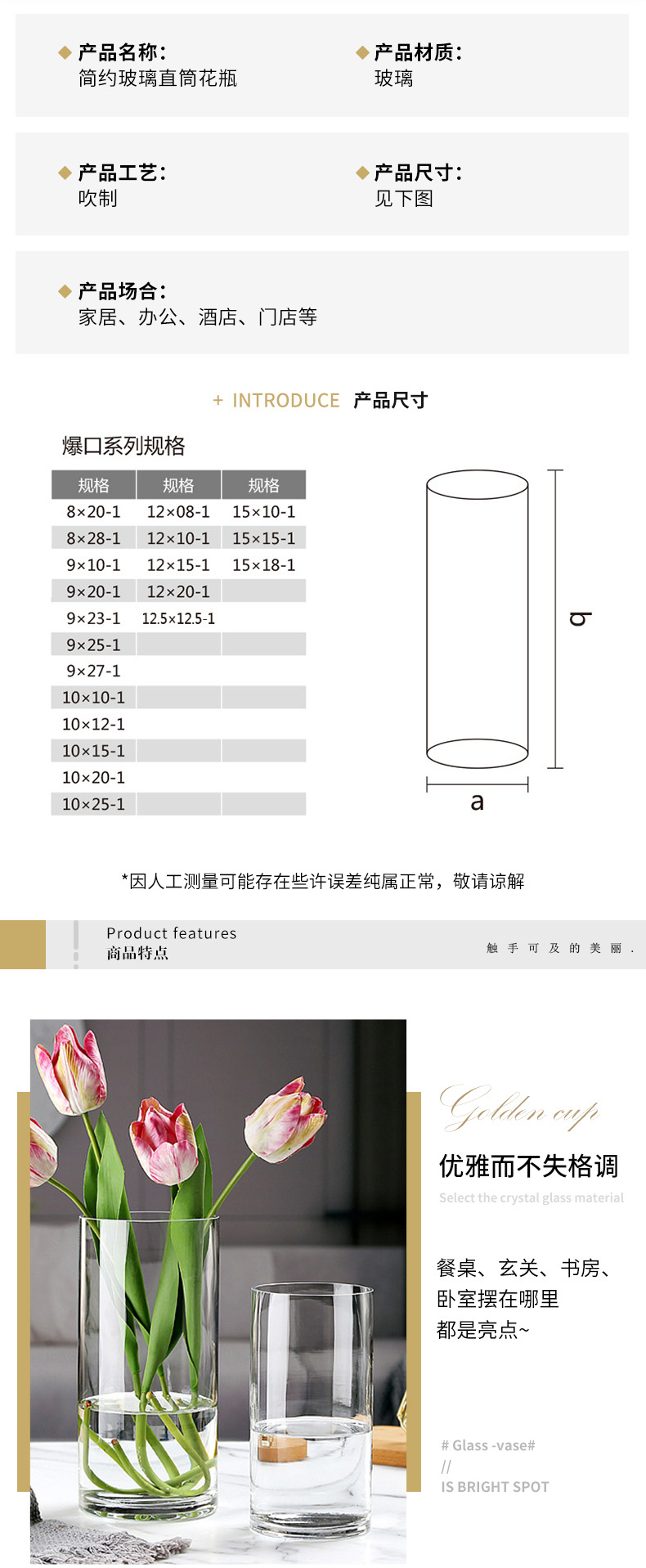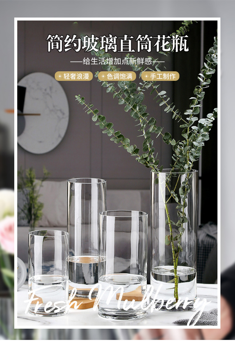 간단한 유리 빛 럭셔리 꽃병 투명 꽃 배열 대나무 빛 고급 유리 꽃병 식탁 장식품 유리 꽃병스토어 가기