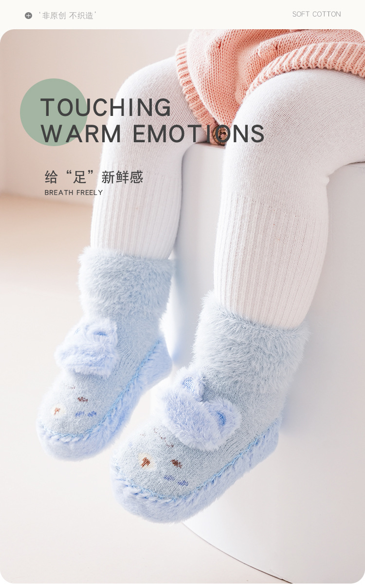겨울용 두꺼운 아기 바닥 양말 만화 캐릭터 플러시 점착 미끄럼 방지 아기 걸음마 신발 양말 가을 겨울 어린이 신발 양말스토어 가기