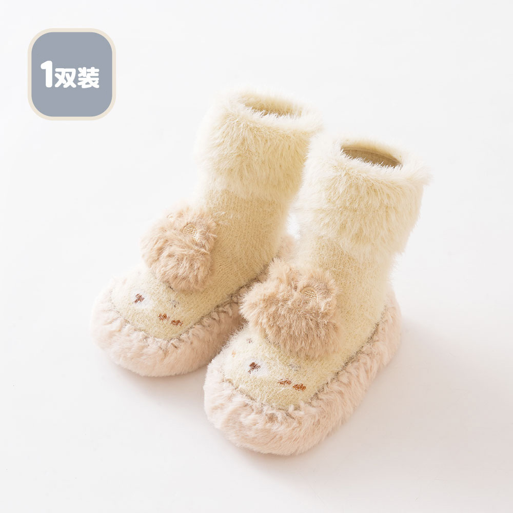 겨울용 두꺼운 아기 바닥 양말 만화 캐릭터 플러시 점착 미끄럼 방지 아기 걸음마 신발 양말 가을 겨울 어린이 신발 양말