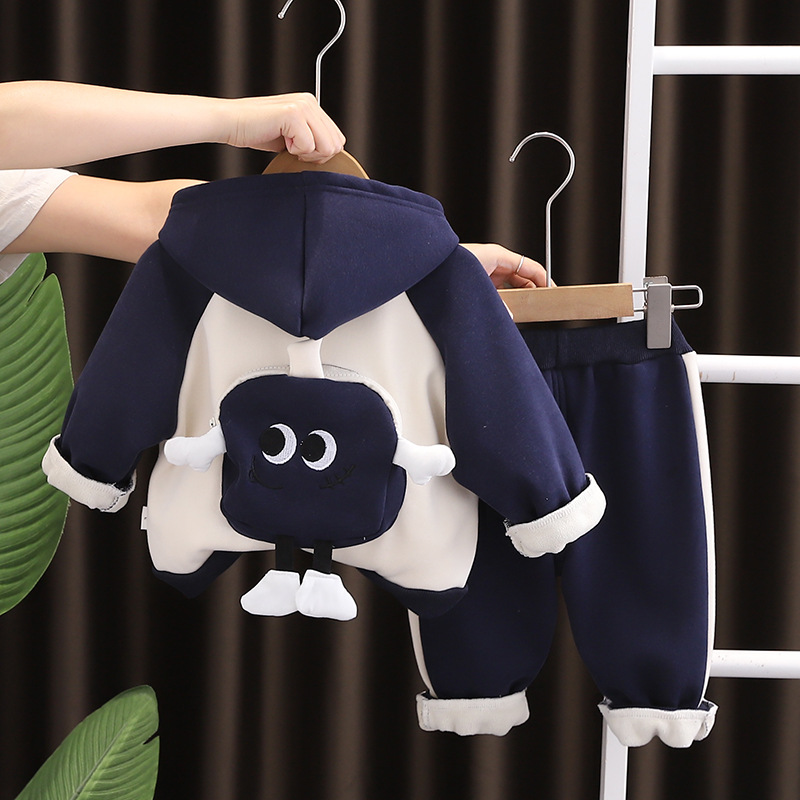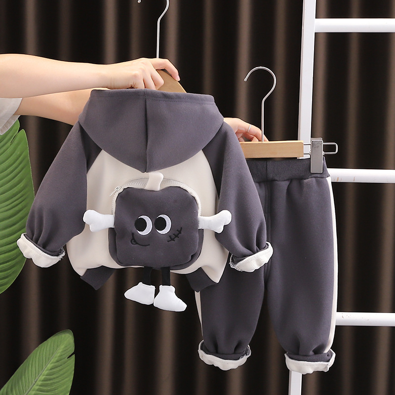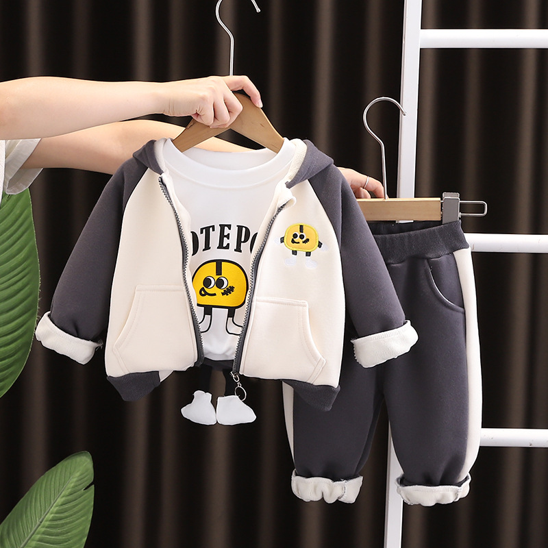 가을과 겨울 2024 새로운 한국 아동복 기모 가방 3 조각 겨울 긴팔 남녀 어린이 세트 도매스토어 가기