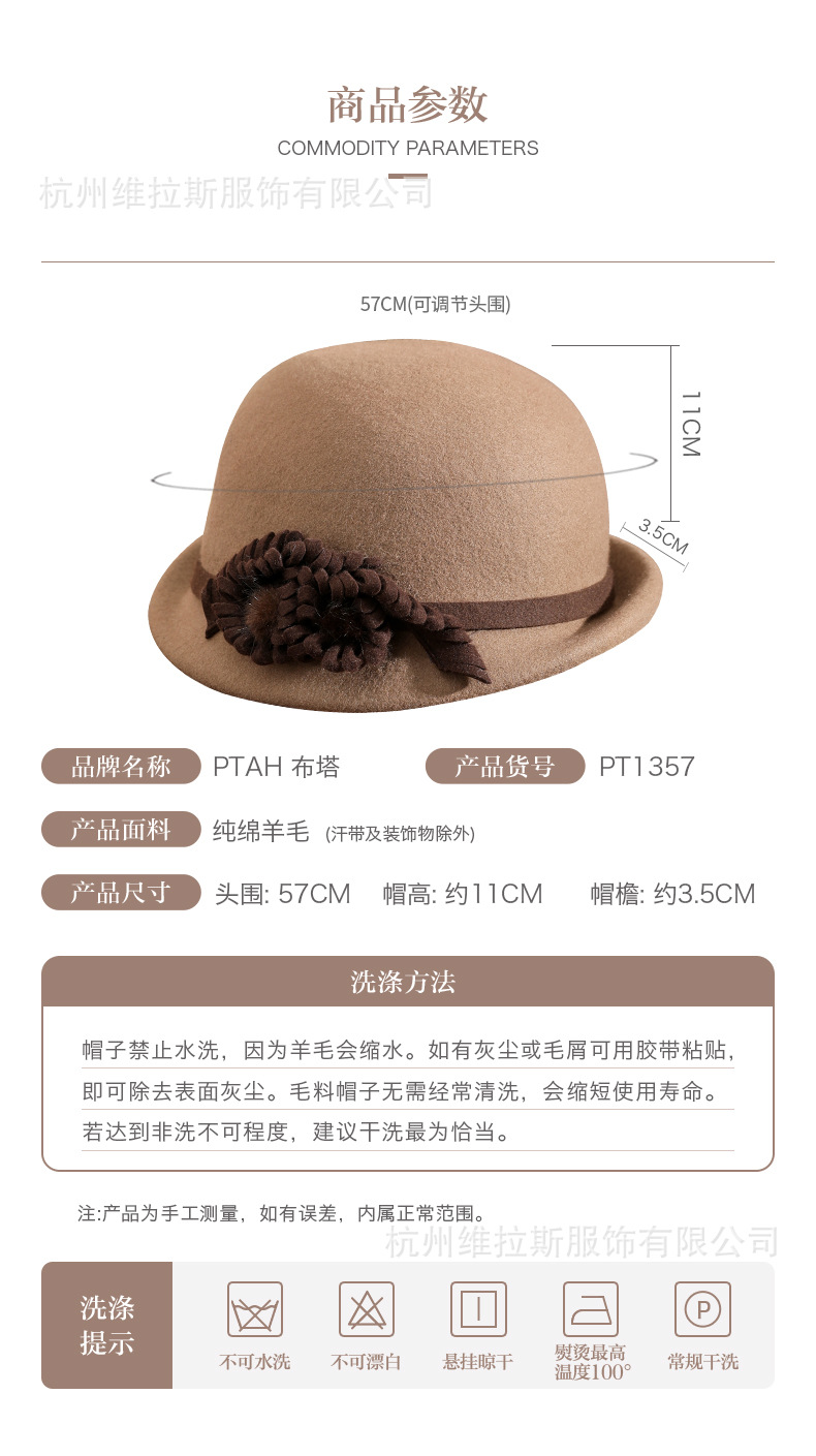 부타 모자 여성의 가을과 겨울 양모 영국 패션 올 매치 레트로 가을과 겨울 펠트 모자 양모 탑 모자 PT1357스토어 가기