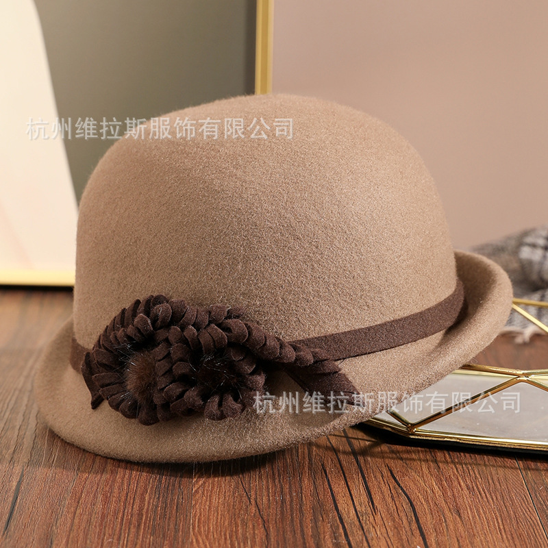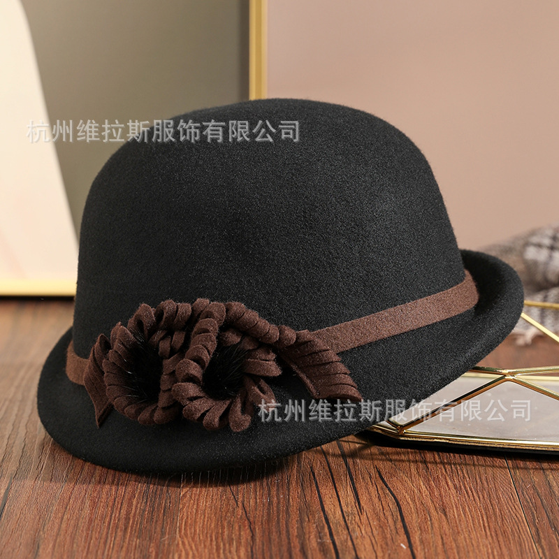 부타 모자 여성의 가을과 겨울 양모 영국 패션 올 매치 레트로 가을과 겨울 펠트 모자 양모 탑 모자 PT1357