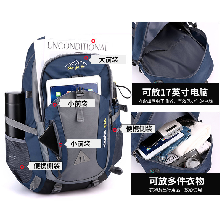 새로운 40L 야외 등산 가방 남녀 배낭 스포츠 학교 가방 레저 여행 배낭 대용량