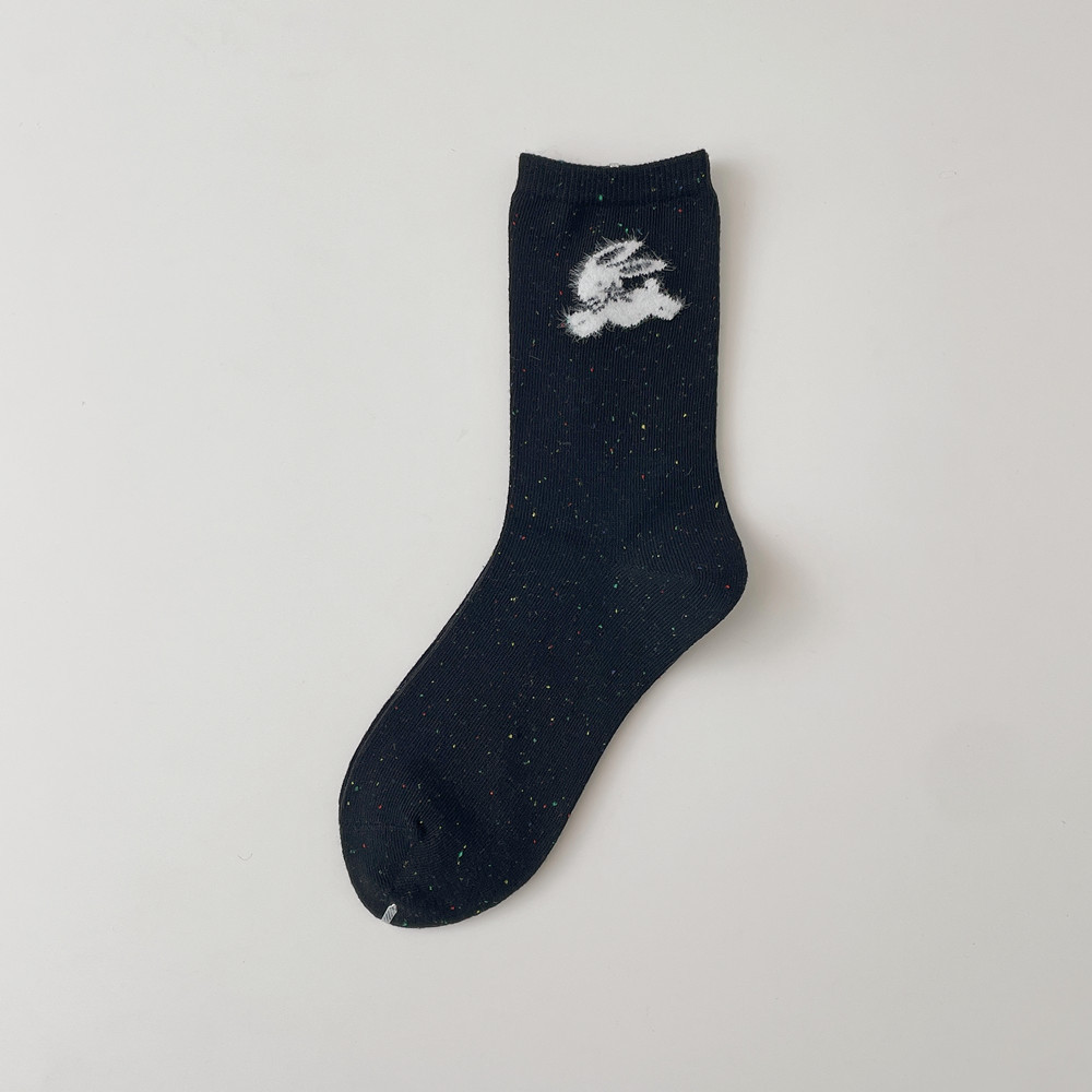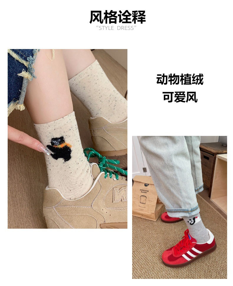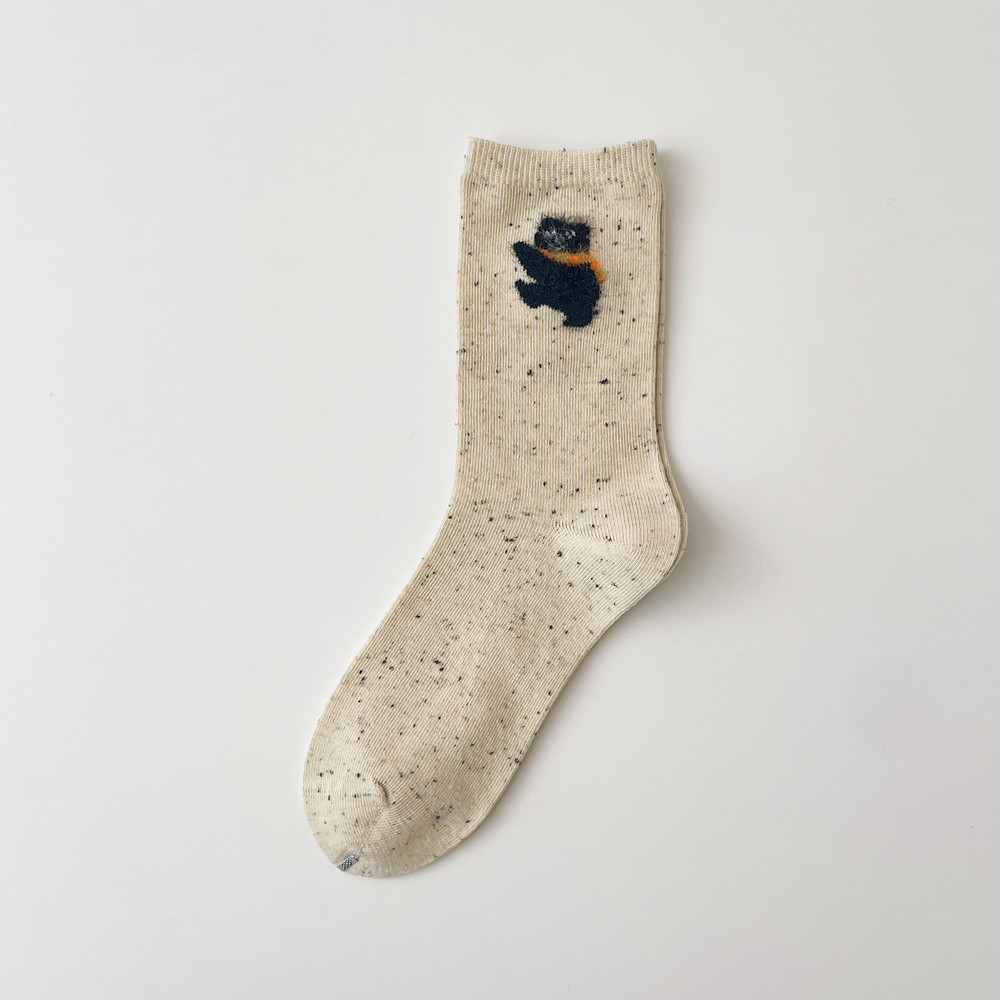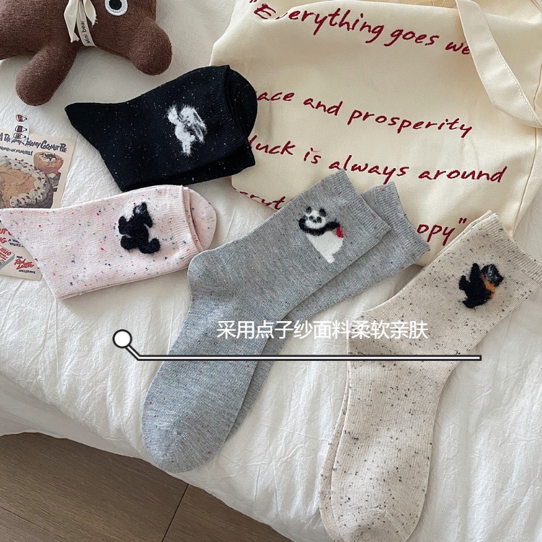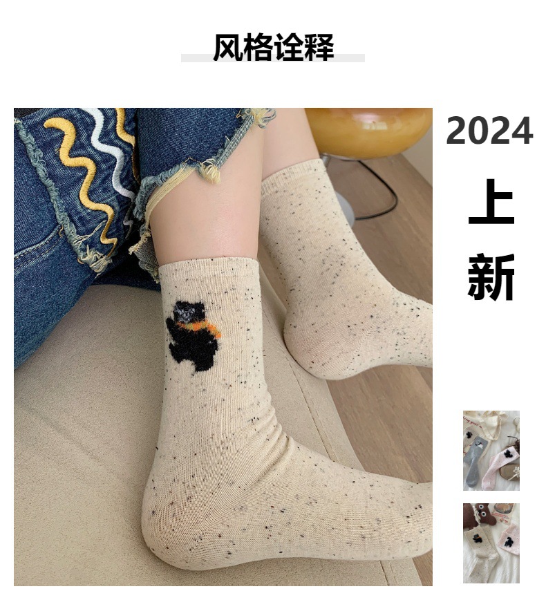 양말 봄 가을과 겨울 여성 포인트 원사 중간 길이 양말 코튼 Ins 유행 일본 스타일 귀여운 만화 곰 강아지 스타킹
