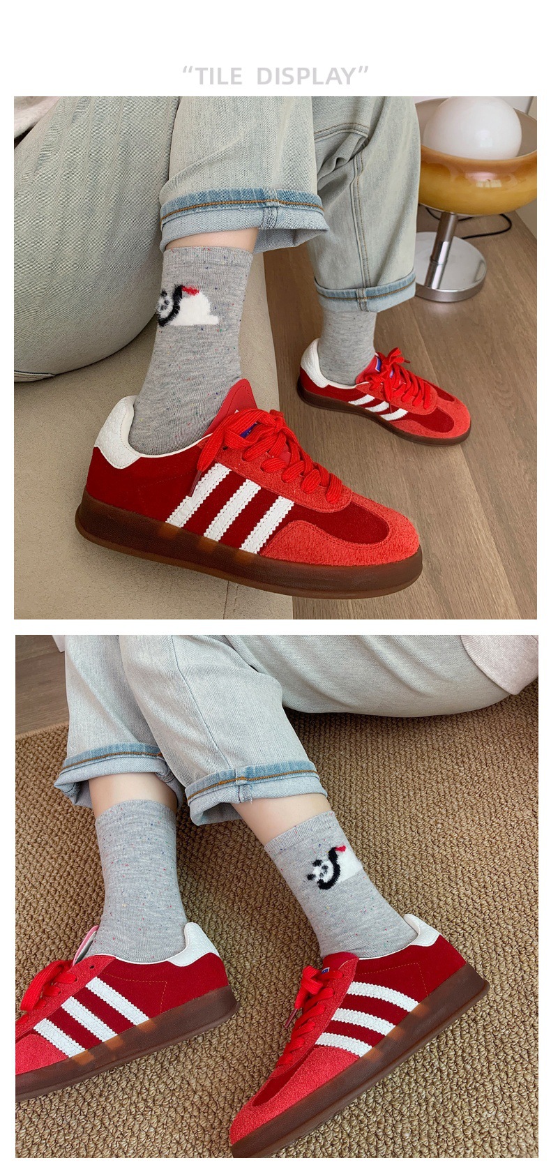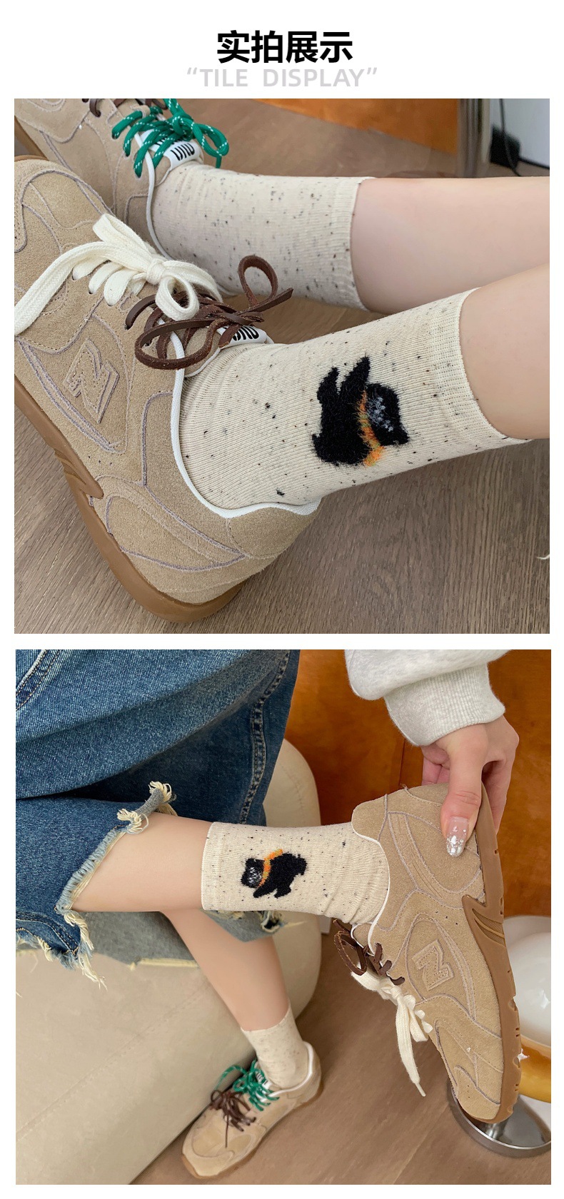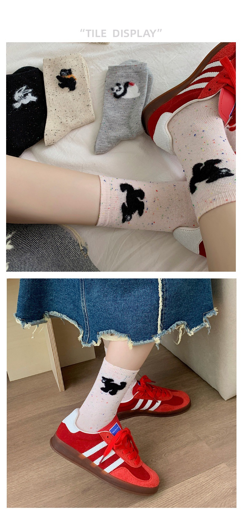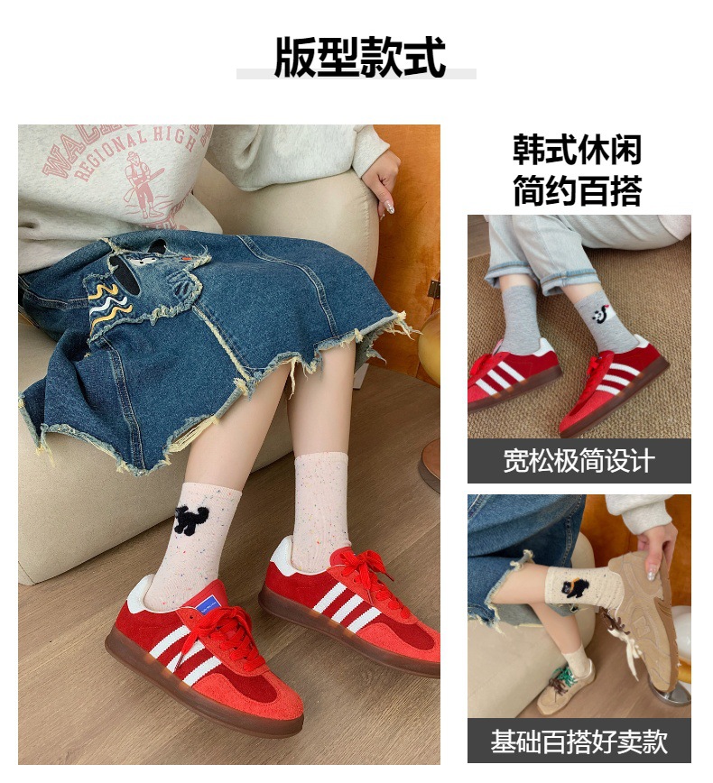 양말 봄 가을과 겨울 여성 포인트 원사 중간 길이 양말 코튼 Ins 유행 일본 스타일 귀여운 만화 곰 강아지 스타킹
