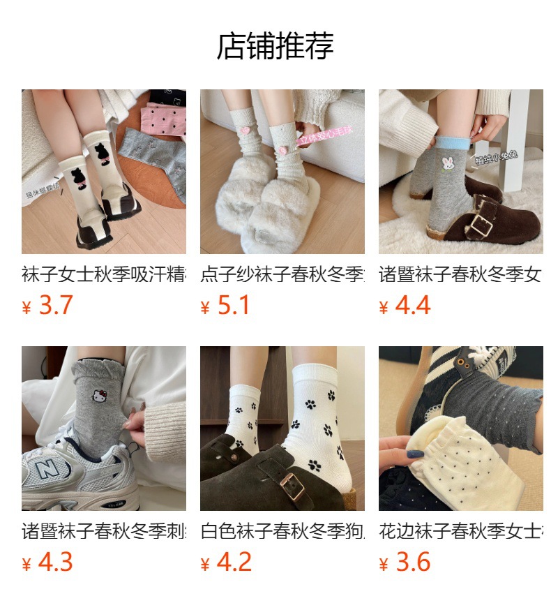 양말 봄 가을과 겨울 여성 포인트 원사 중간 길이 양말 코튼 Ins 유행 일본 스타일 귀여운 만화 곰 강아지 스타킹스토어 가기