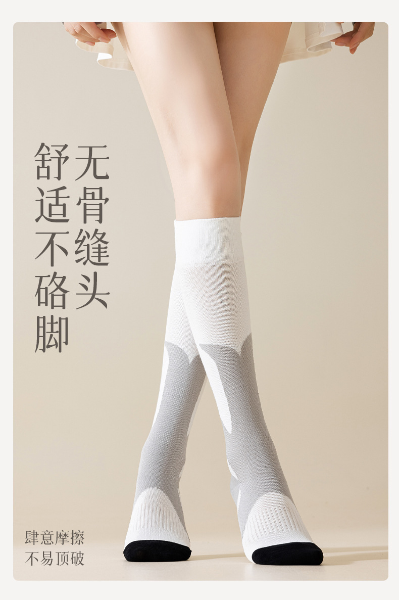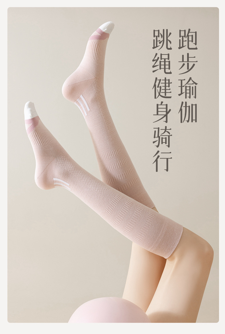 스포츠 압력 송아지 양말 여성 사이클링 양말 러닝 피트니스 중간 높이 슬리밍 뼈없는 탄성 긴 요가 양말