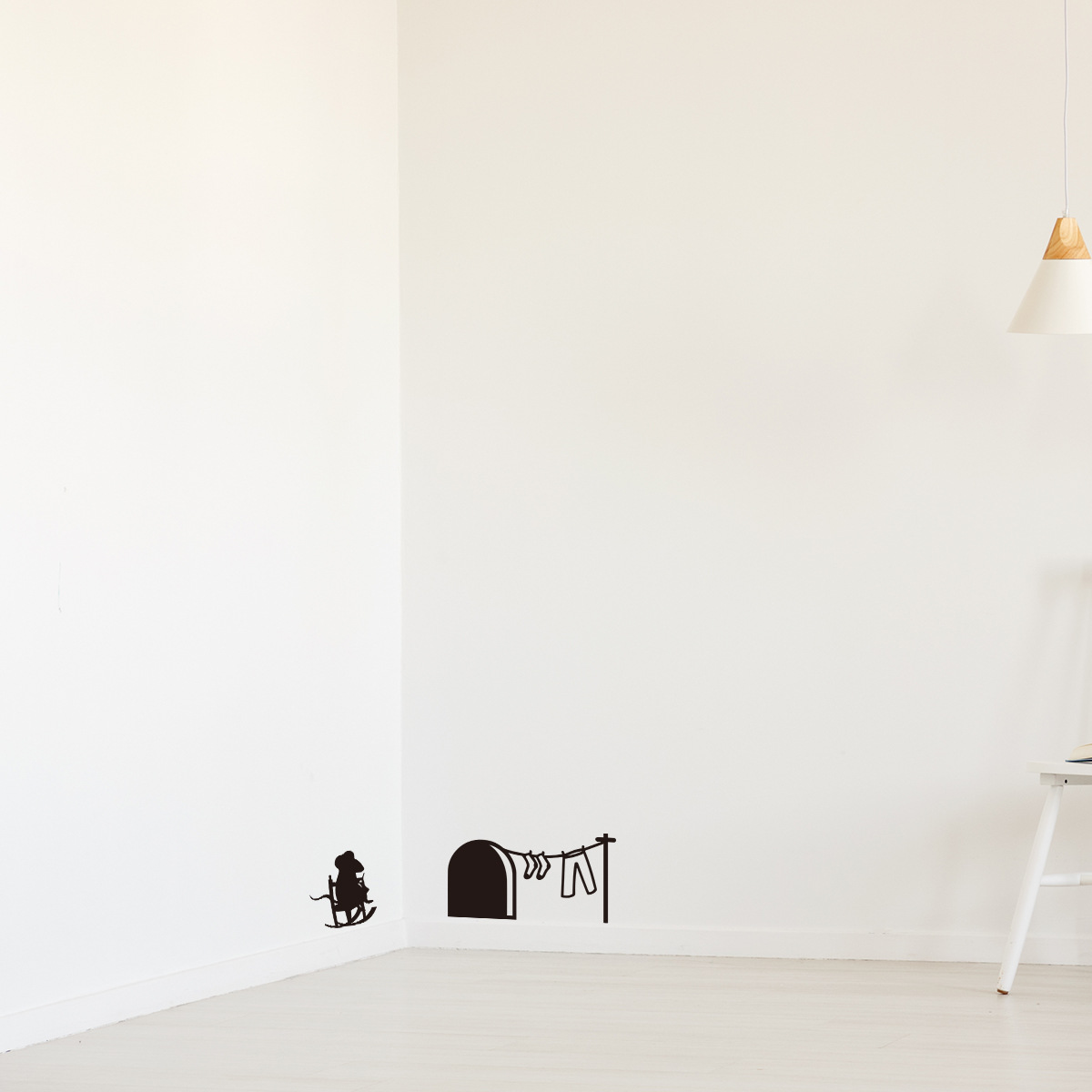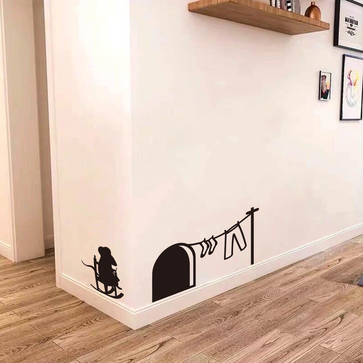 창조적 인 여유롭게 마우스 구멍 생활 실루엣 자체 접착 벽 스티커 방 거실 치주 선 장식 스티커 ZN3003C스토어 가기