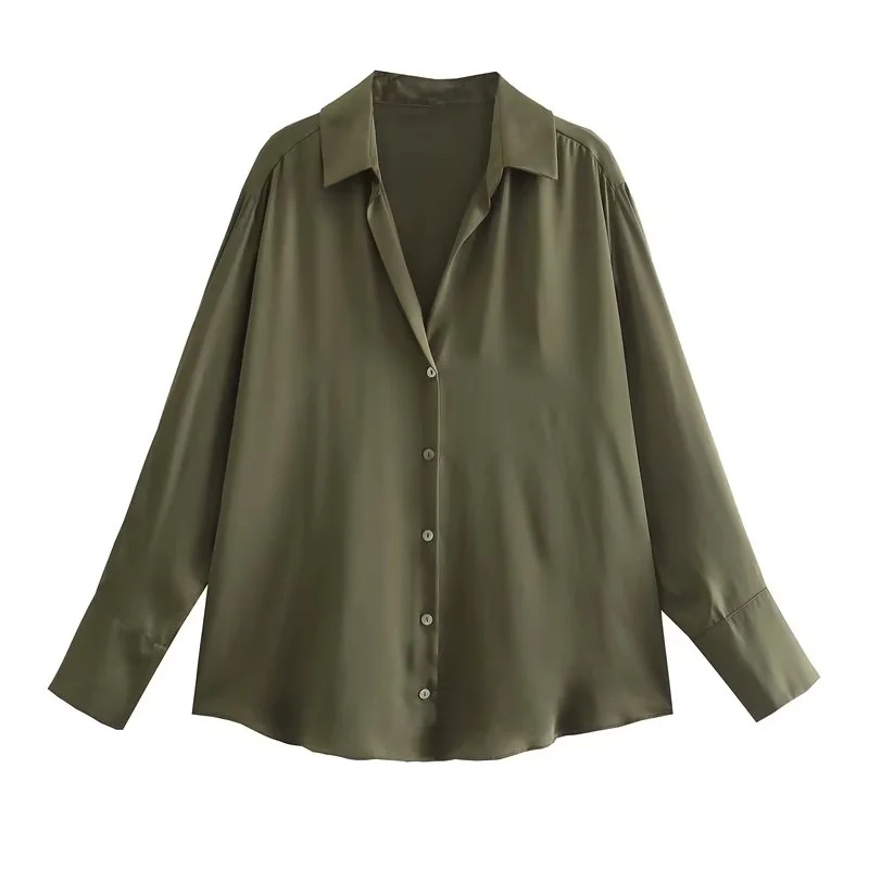 대외 무역 목록! 가을 새 여성 의류 유럽과 미국 올 매치 실크 새틴 질감 긴 소매 셔츠 여성용 2197745스토어 가기