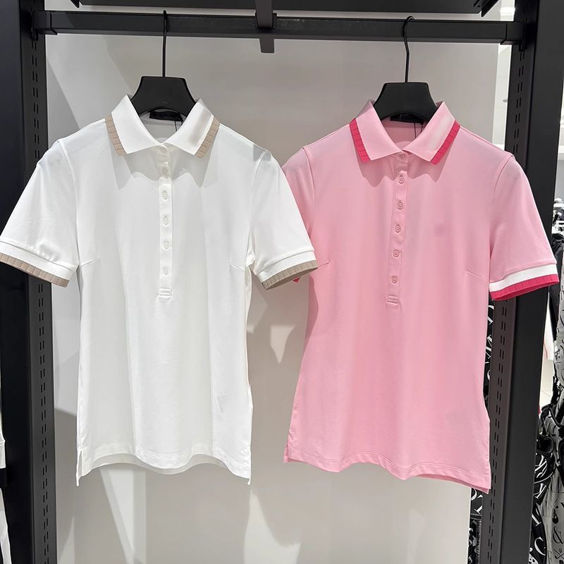 한국 골프 신상 여름 여성용 아웃도어 라펠 스포츠 얇은 통기성 반팔 상의