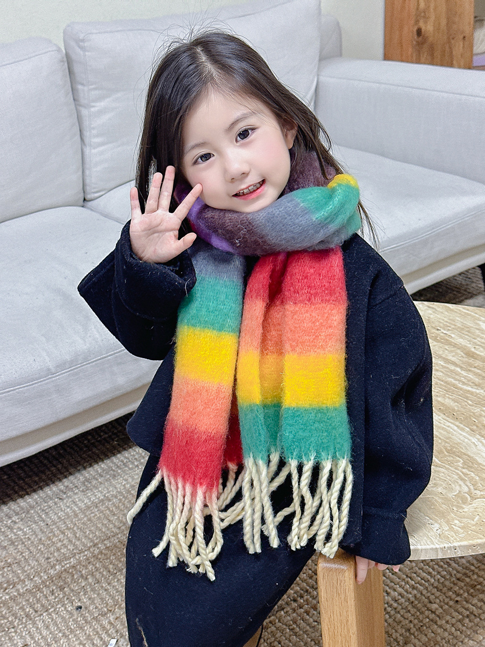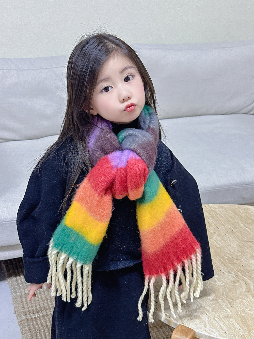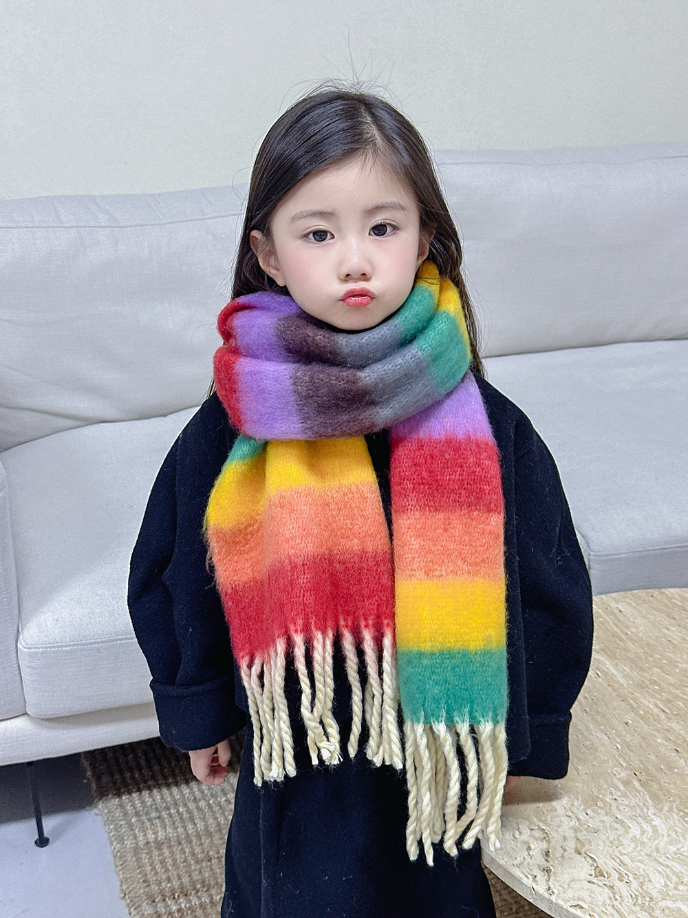 수포 수평 스카프 2024 소년과 소녀 가을 겨울 따뜻한 한국 고급 따뜻한 긴 수건과 일치하는 새로운 무지개 색상