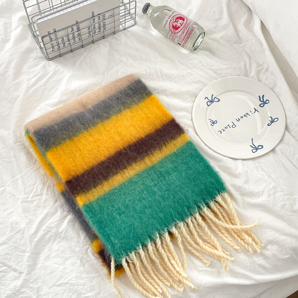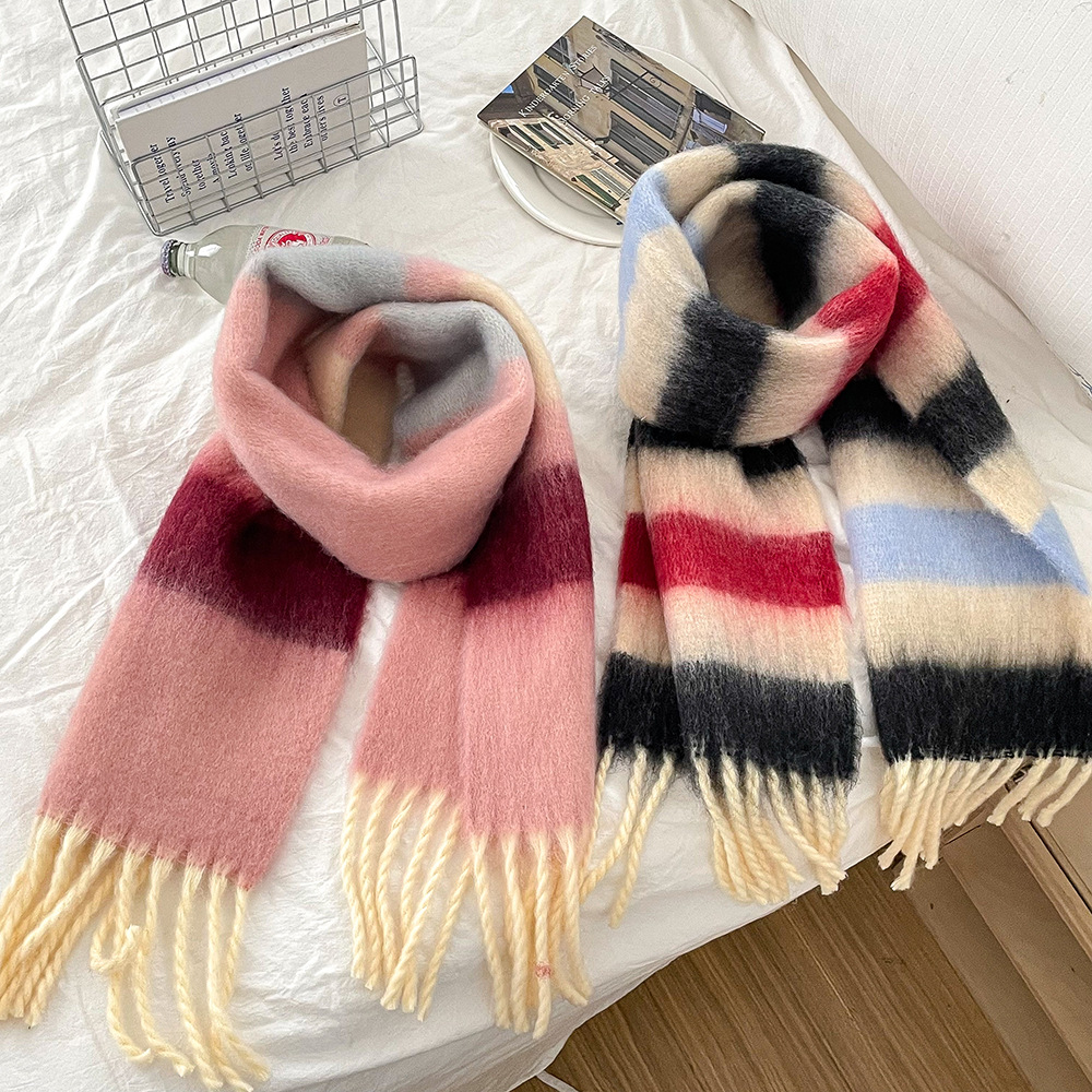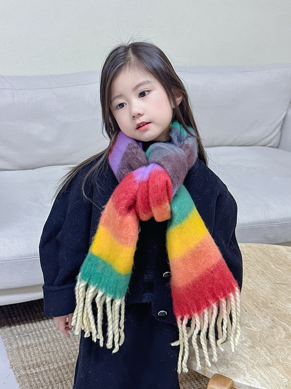 수포 수평 스카프 2024 소년과 소녀 가을 겨울 따뜻한 한국 고급 따뜻한 긴 수건과 일치하는 새로운 무지개 색상