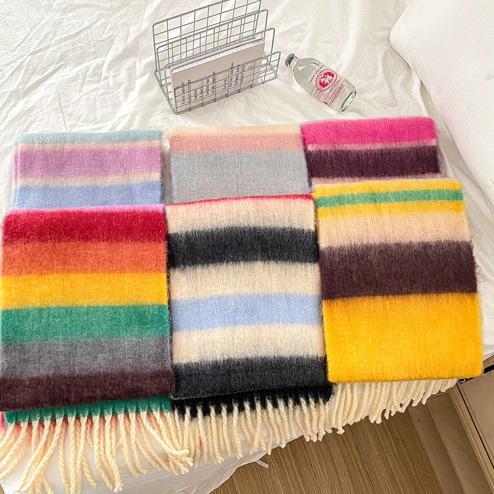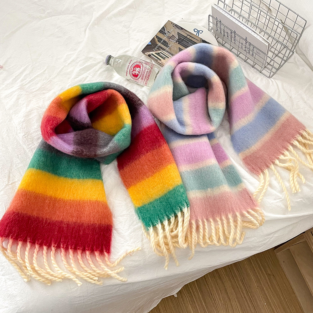 수포 수평 스카프 2024 소년과 소녀 가을 겨울 따뜻한 한국 고급 따뜻한 긴 수건과 일치하는 새로운 무지개 색상스토어 가기
