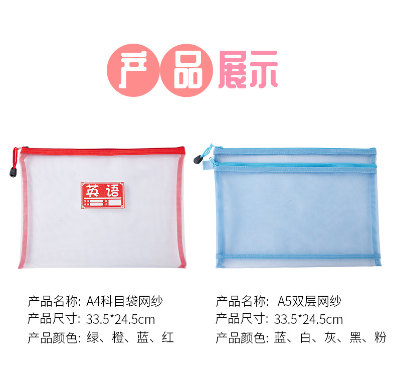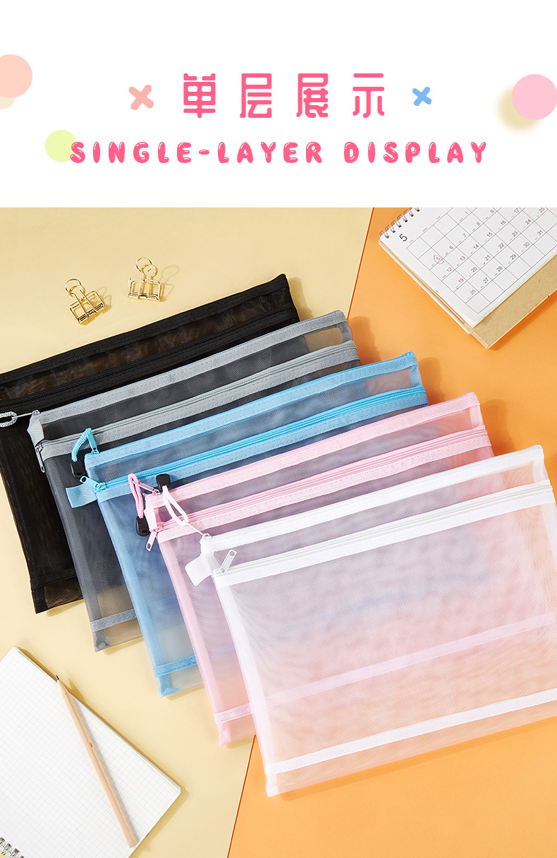 A4 메쉬 투명 파일 가방 지퍼 저장 학생 테스트 종이 연필 가방 사무실 a5 데이터 파일 가방 인쇄 가능한 로고