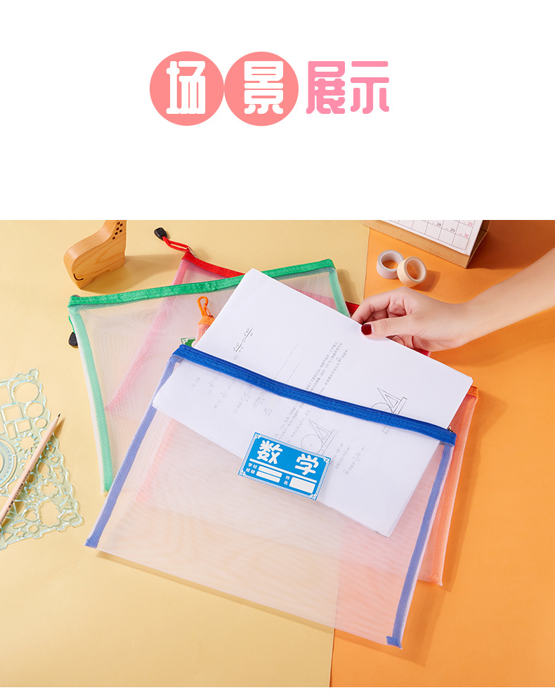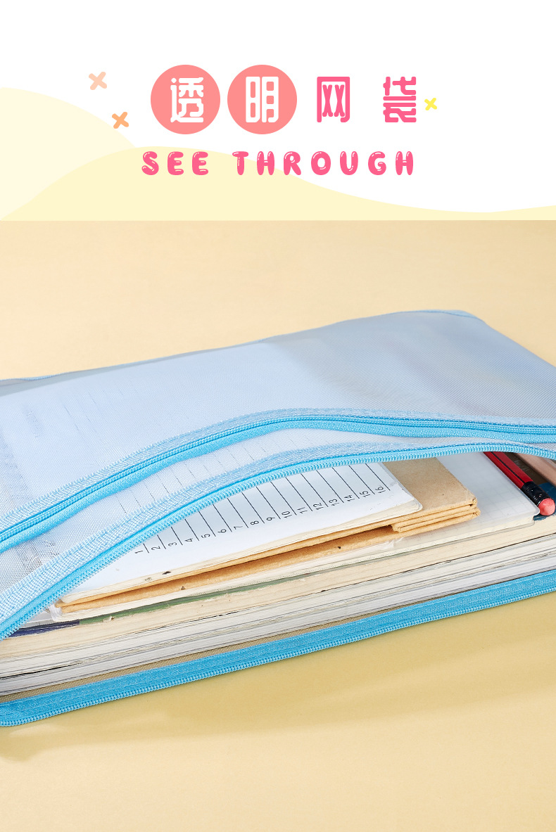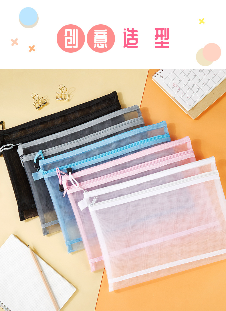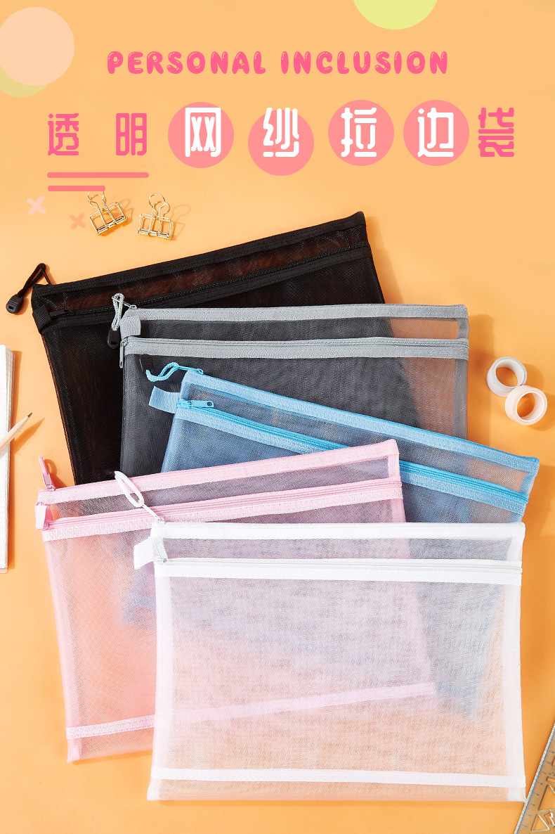 A4 메쉬 투명 파일 가방 지퍼 저장 학생 테스트 종이 연필 가방 사무실 a5 데이터 파일 가방 인쇄 가능한 로고스토어 가기