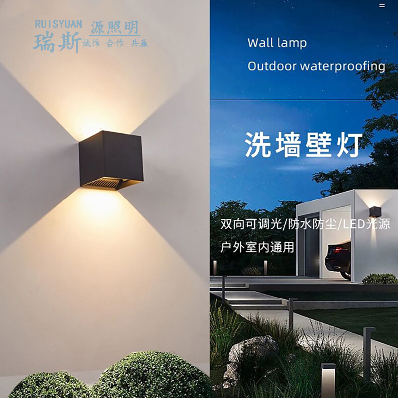 야외 벽 램프 방수 외벽 램프 빌라 안뜰 정원 위아래로 더블 헤드 스포트라이트 LED 야외 벽 세척 유도 램프