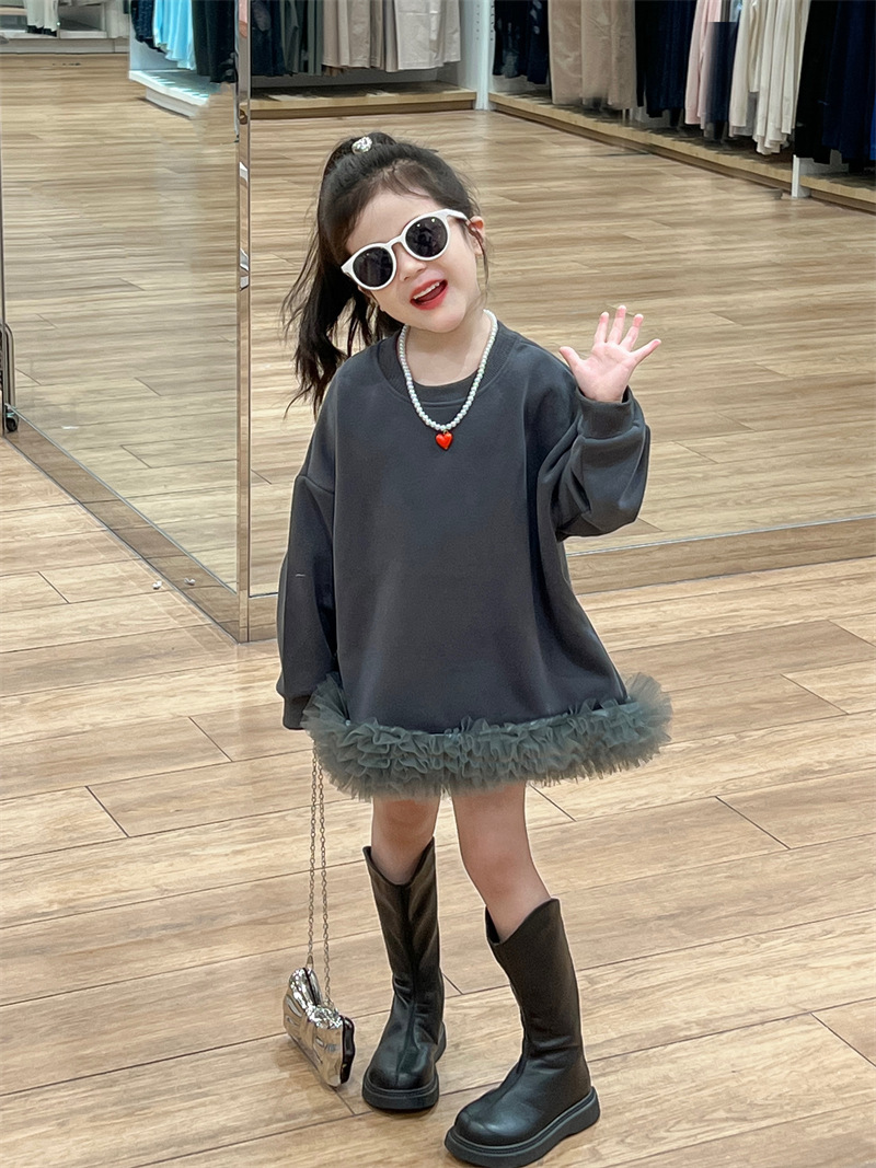 2025 가을 신상 한국 스타일 아동복 여아용 패셔너블한 스티치 스커트 달콤한 원피스 튜튜 스커트스토어 가기