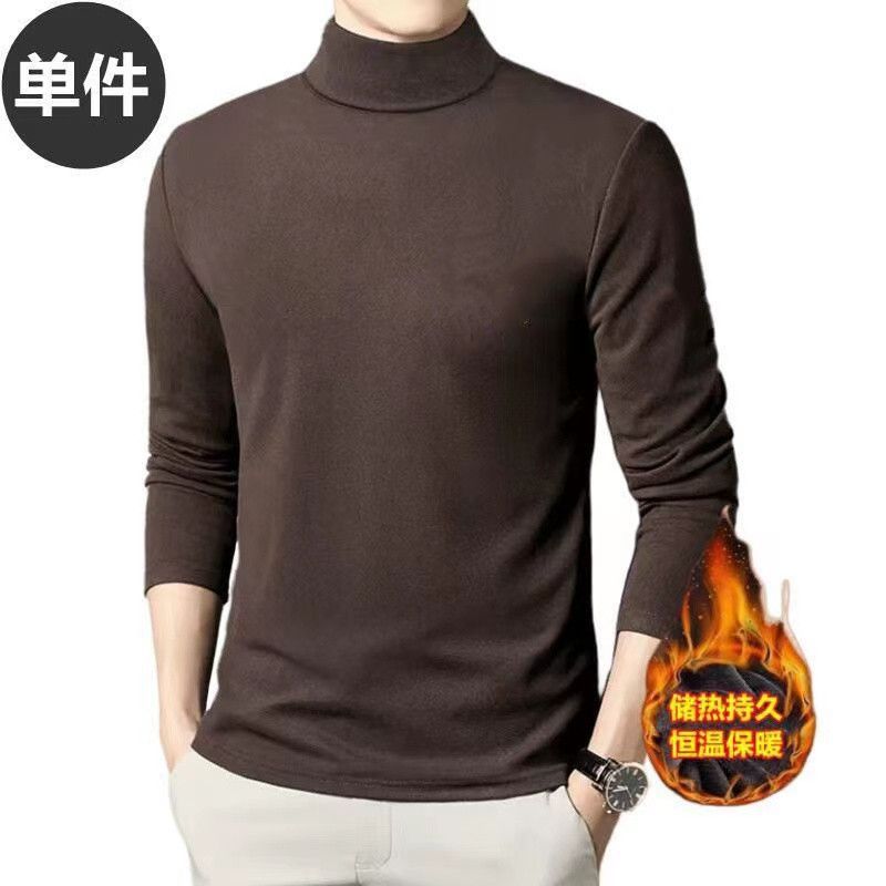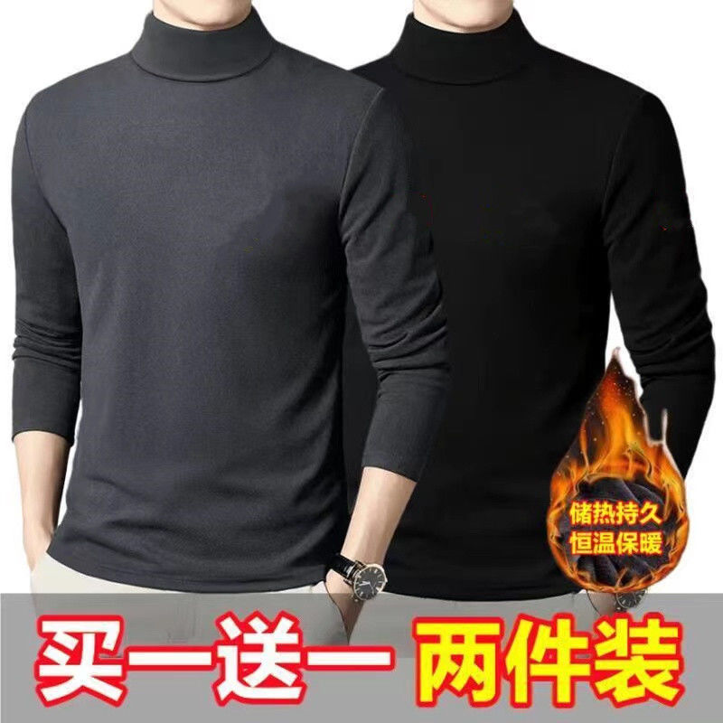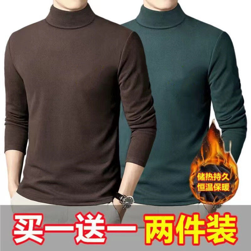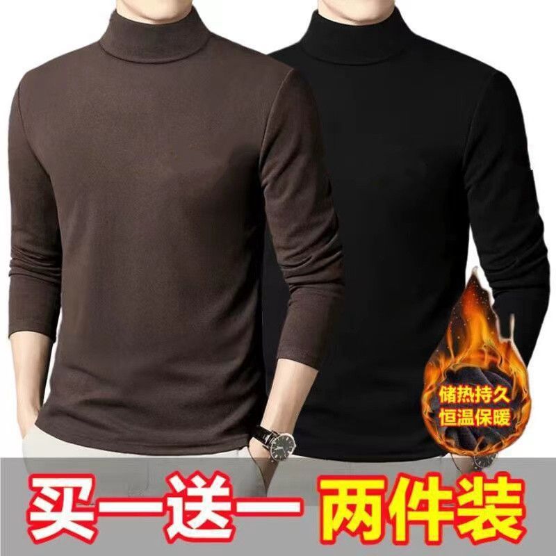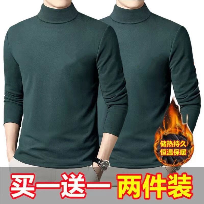 독일 벨벳 세미 하이 칼라 바닥 셔츠 남성 양면 독일 벨벳 내부 긴 소매 티셔츠 트렌디 한 겨울 스트레치 열 속옷스토어 가기