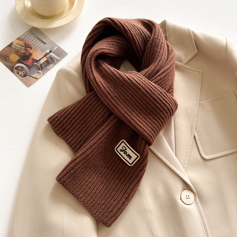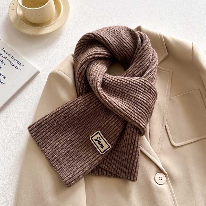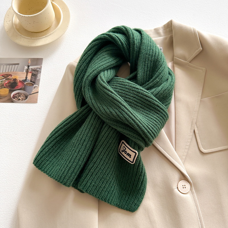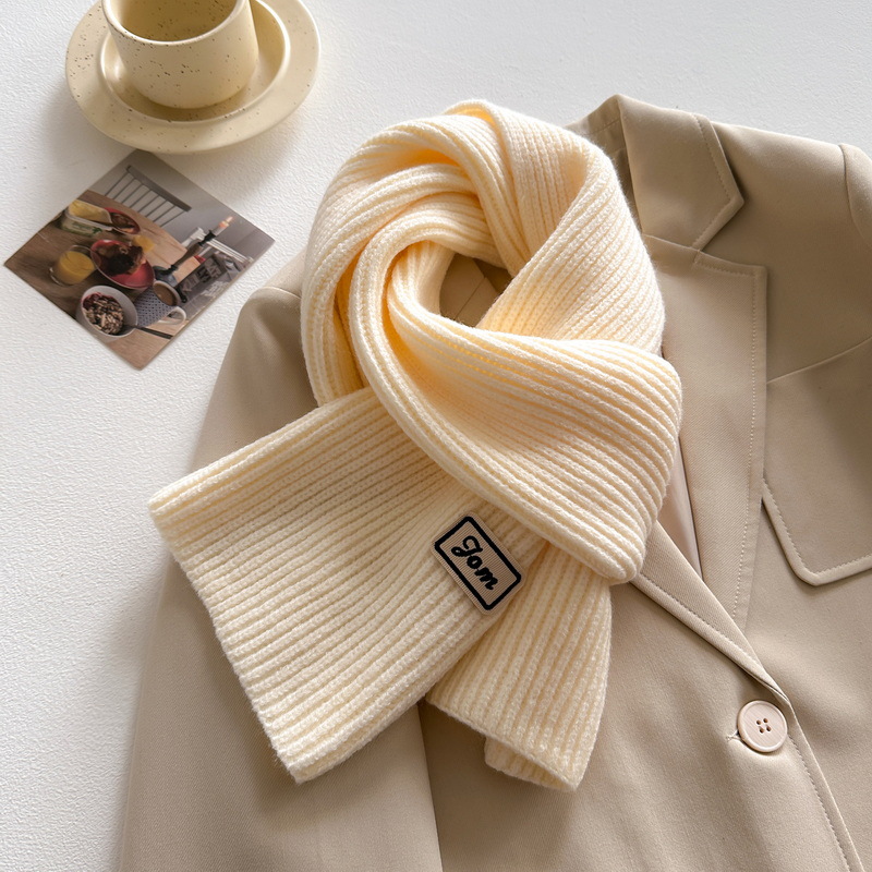 새 편지 천 라벨 단색 니트 스카프 한국 스타일 올매치 달콤한 우아한 겨울 따뜻한 흑백 울 스카프
