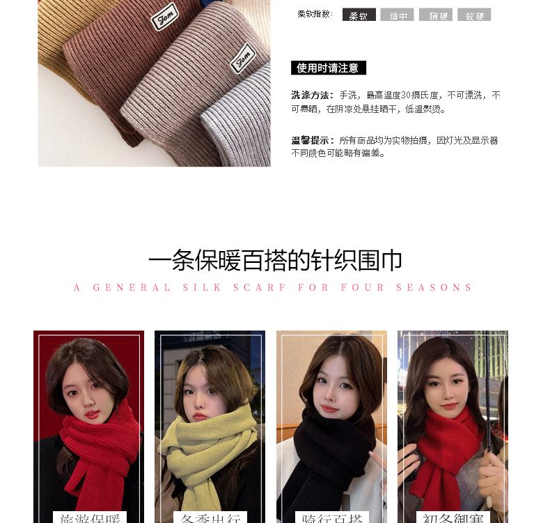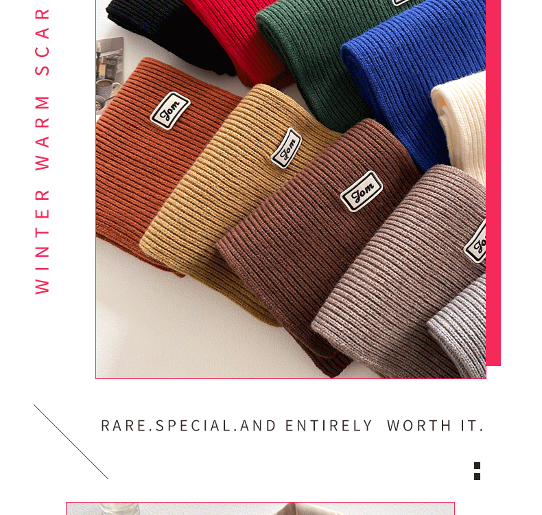 새 편지 천 라벨 단색 니트 스카프 한국 스타일 올매치 달콤한 우아한 겨울 따뜻한 흑백 울 스카프스토어 가기