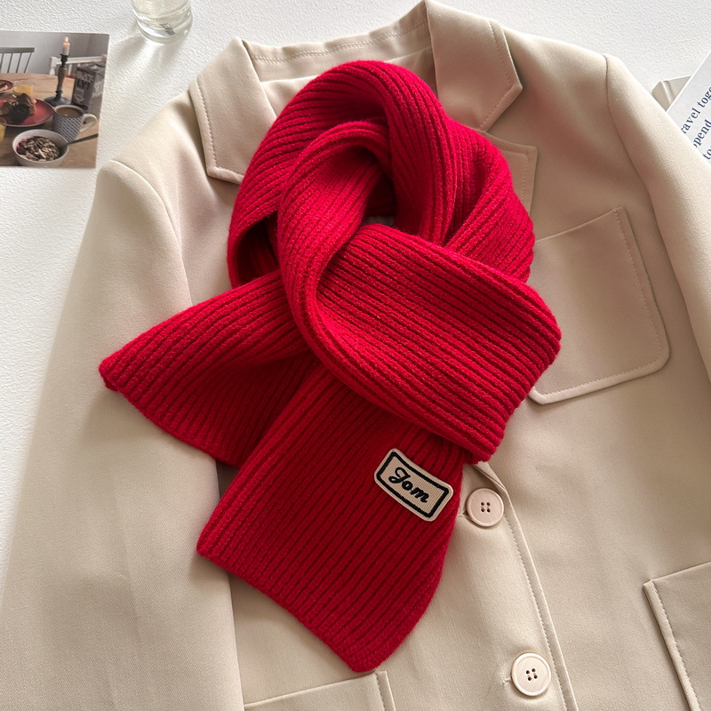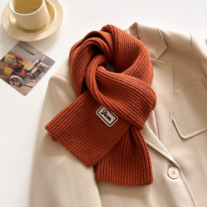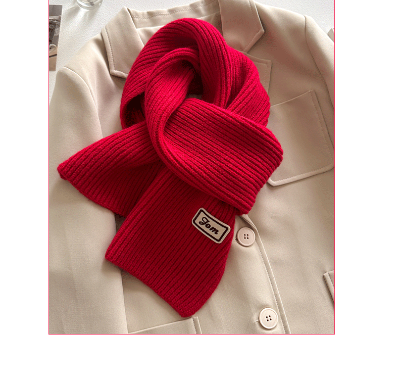 • 스몰 라벨 솔리드 컬러 니트 스카프 러스트 레드