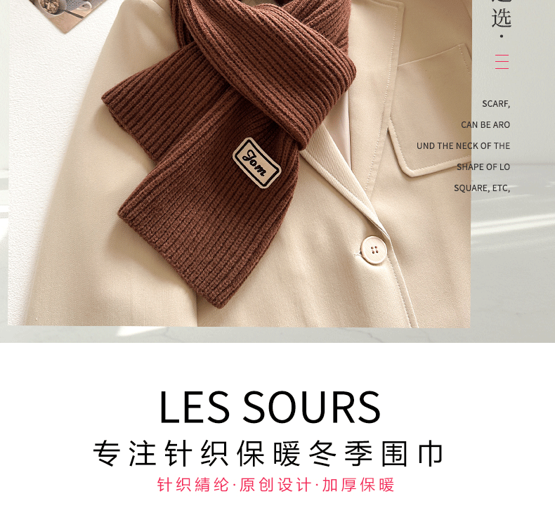 • 스몰 라벨 솔리드 컬러 니트 스카프 모카