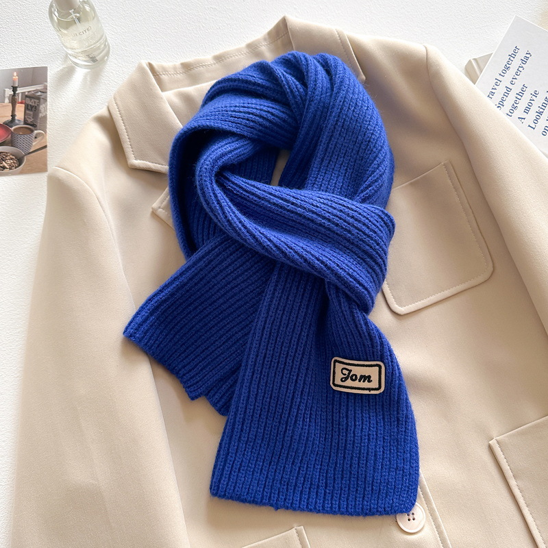 • 스몰 라벨 솔리드 컬러 니트 스카프 사파이어 블루
