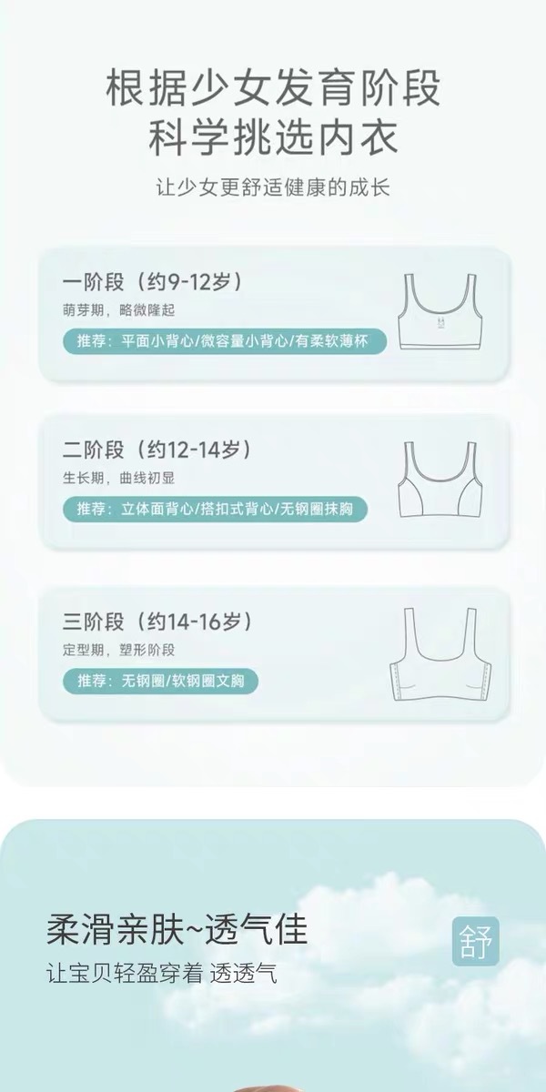 중학생 면화 여학생 특수 속옷 개발 기간 작은 조끼 학생 9-12-13-14-15-16 세 브래지어스토어 가기