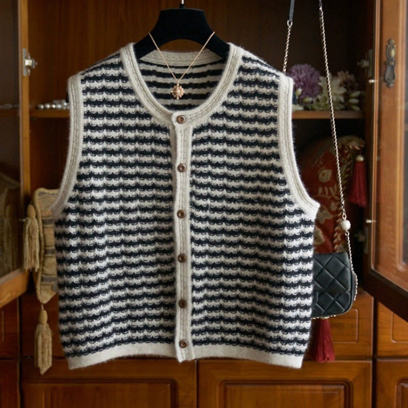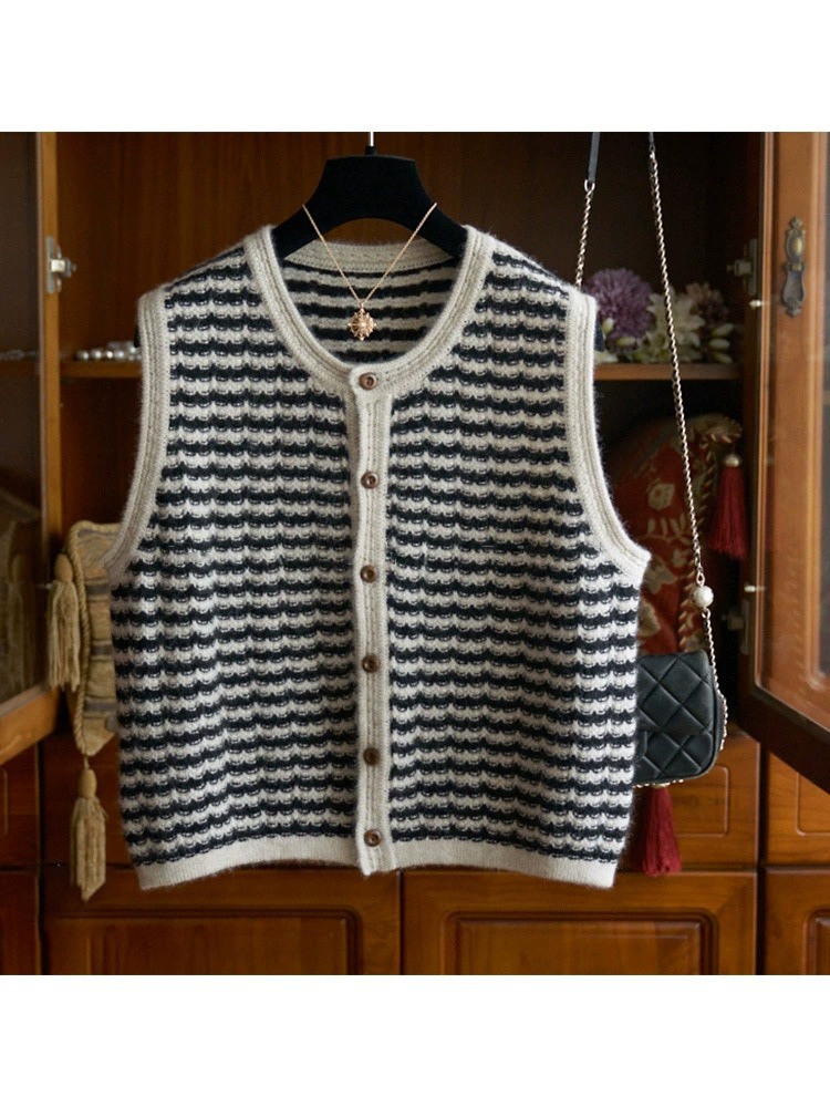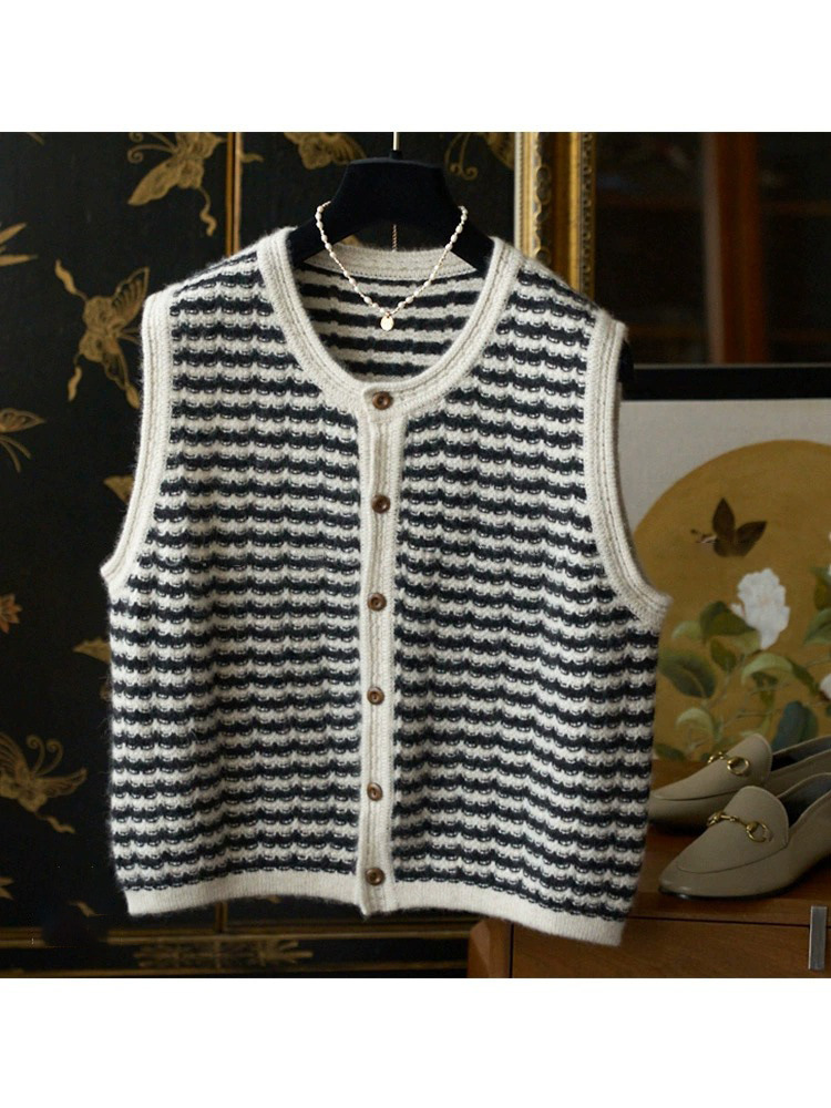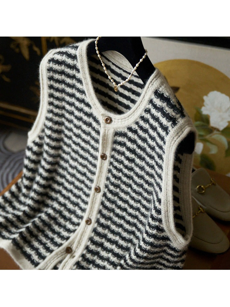 빈티지 민소매 줄무늬 울 조끼 스웨터 여성 24 가을 및 겨울 새로운 짧은 캐시미어 니트 카디건 재킷