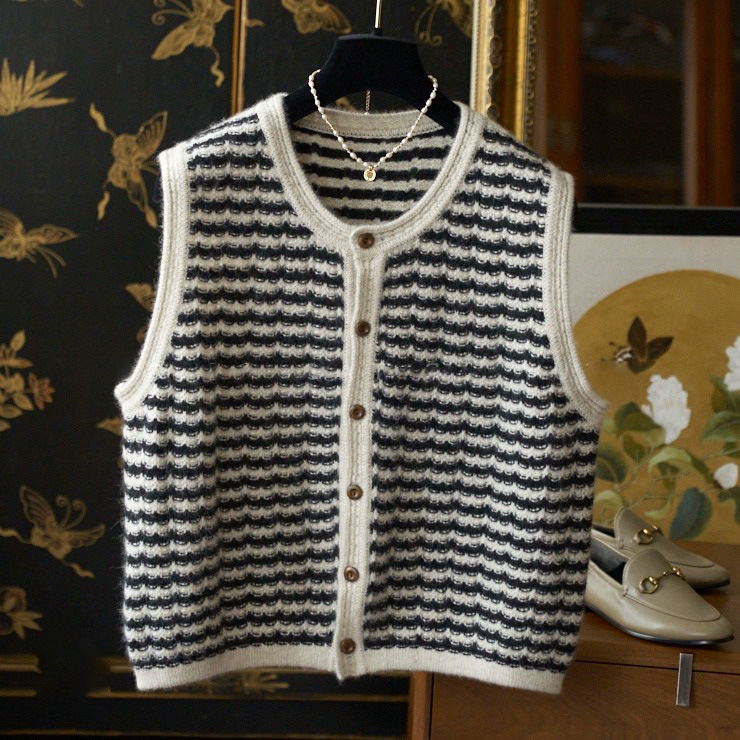 빈티지 민소매 줄무늬 울 조끼 스웨터 여성 24 가을 및 겨울 새로운 짧은 캐시미어 니트 카디건 재킷스토어 가기