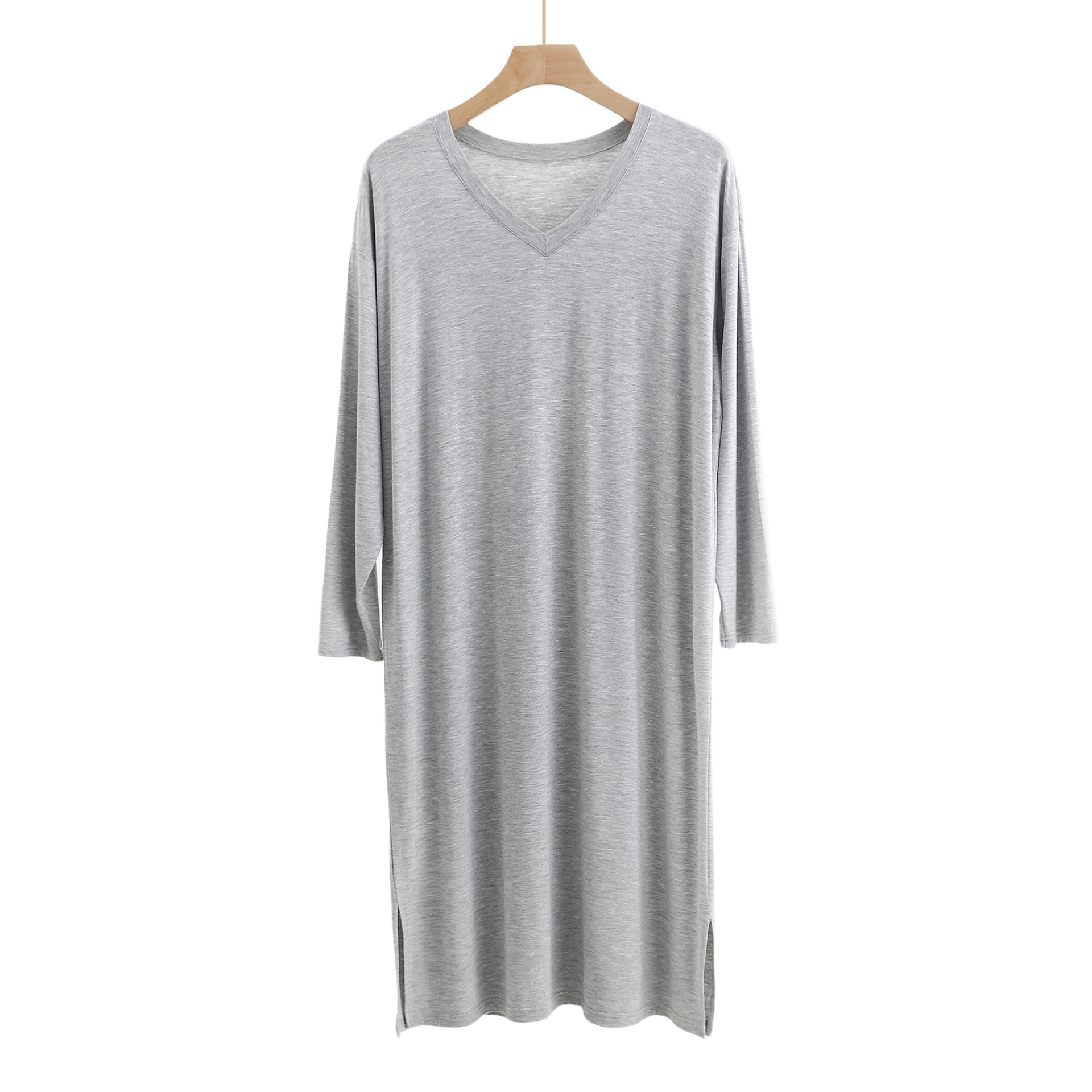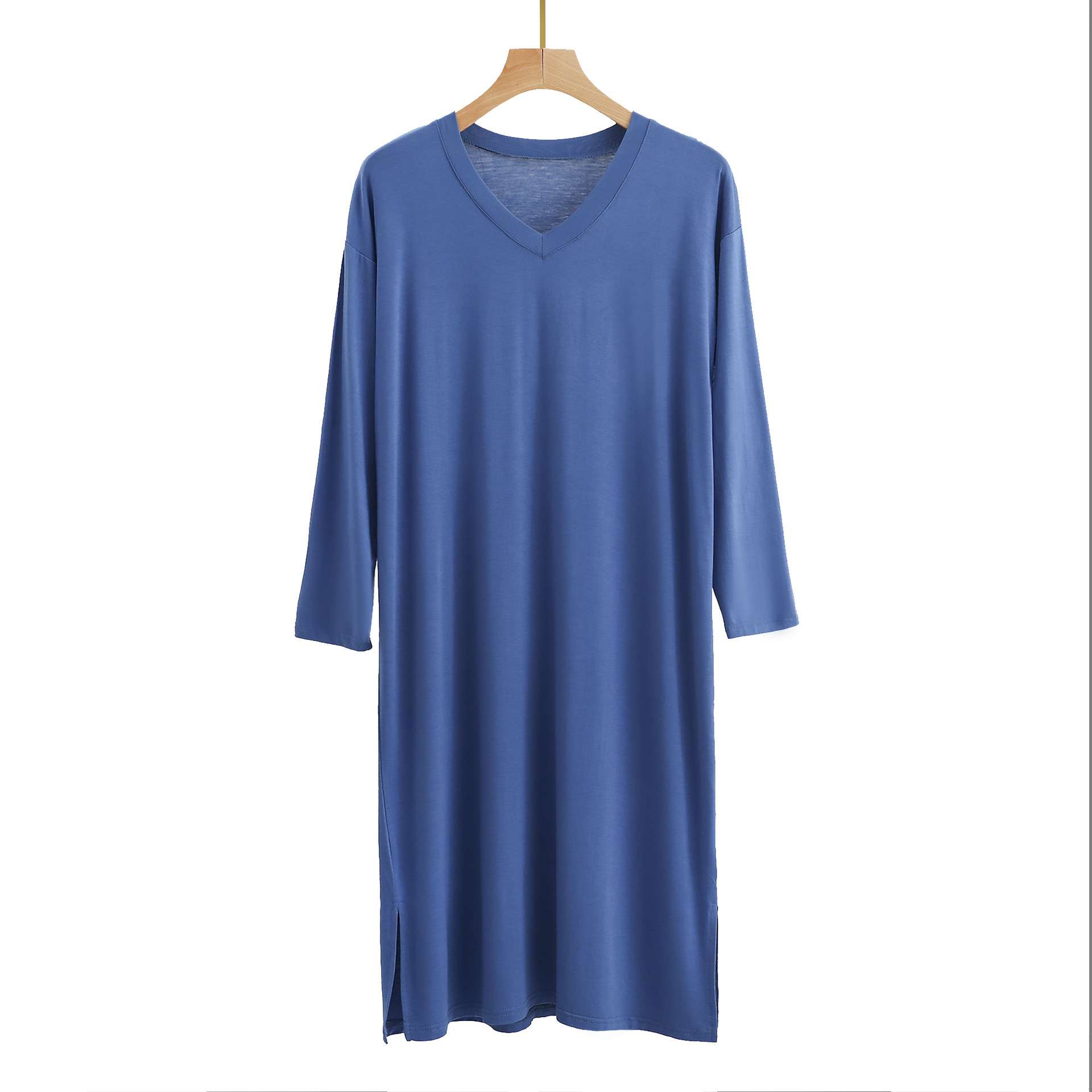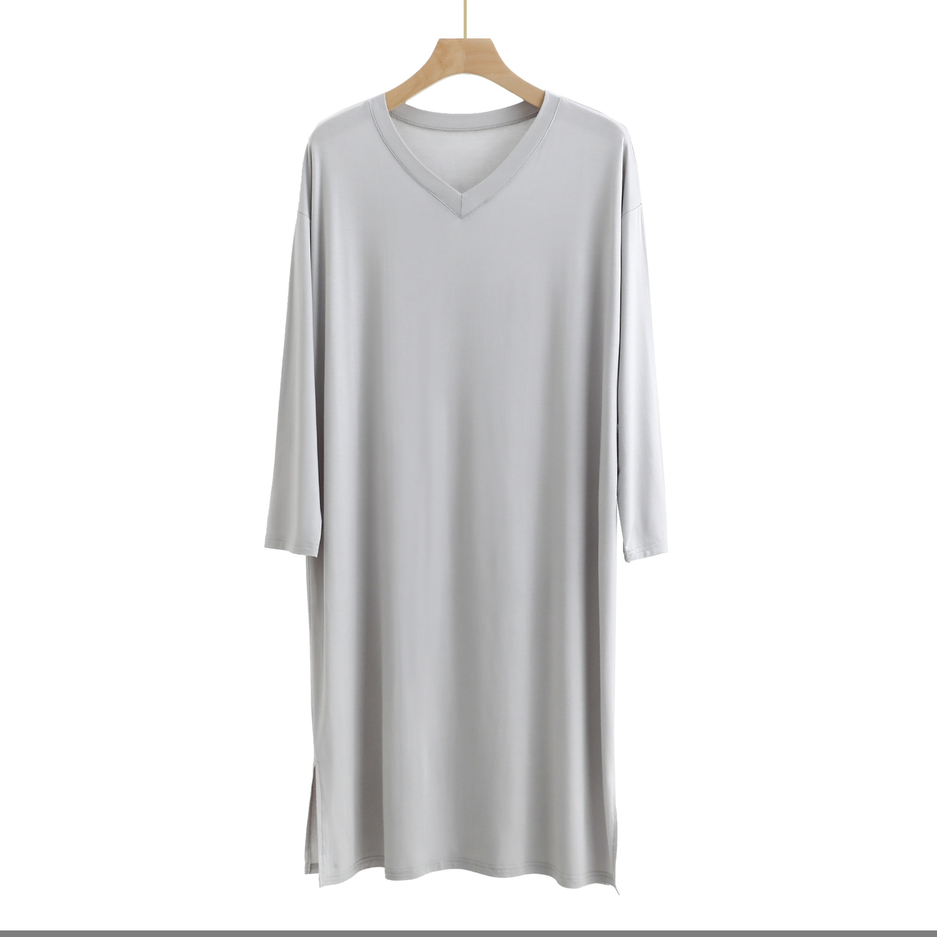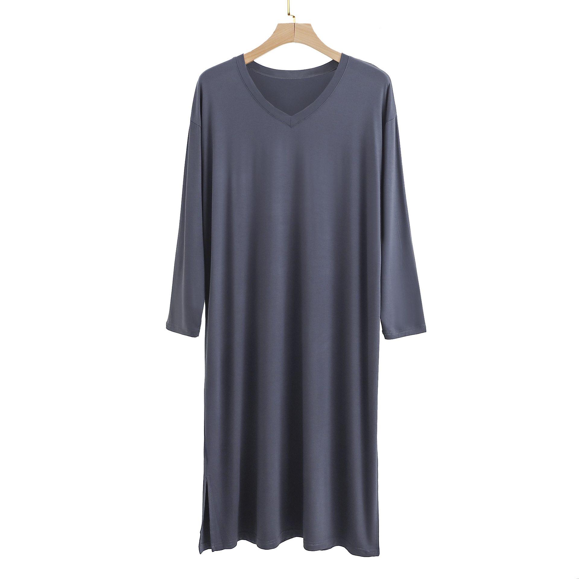 시원한 모달 잠옷 남성 잠옷 중간 길이의 무릎 길이 홈 잠옷 긴 소매 원피스 V 넥 홈 의류스토어 가기