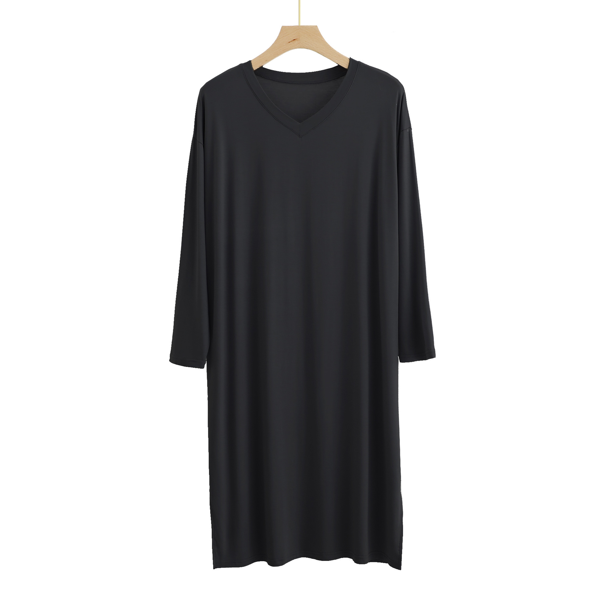 시원한 모달 잠옷 남성 잠옷 중간 길이의 무릎 길이 홈 잠옷 긴 소매 원피스 V 넥 홈 의류