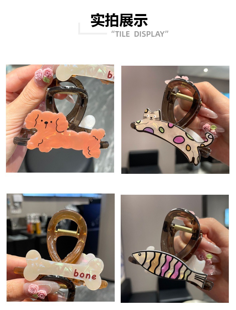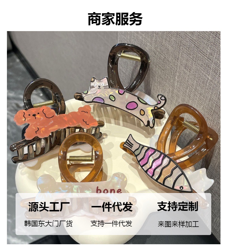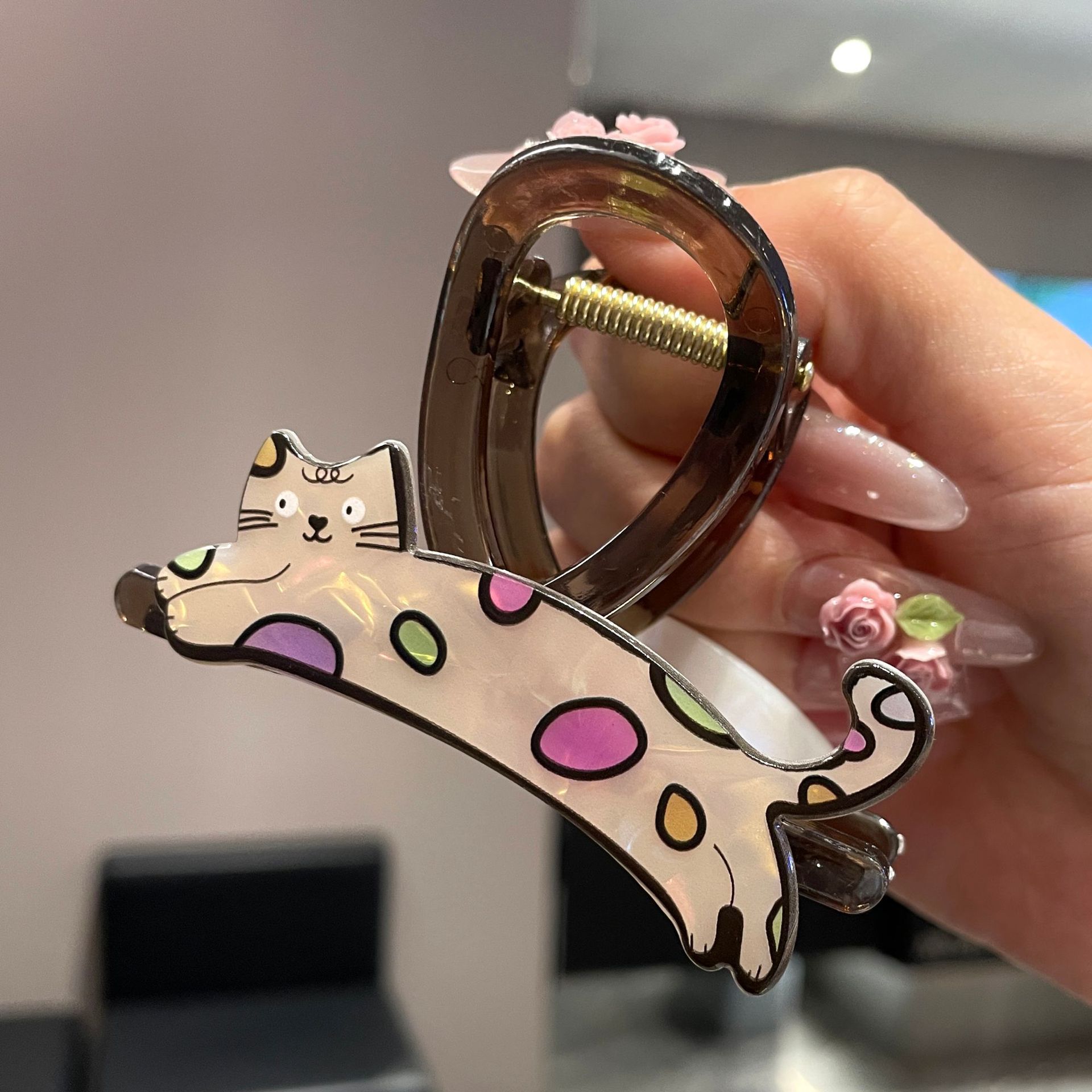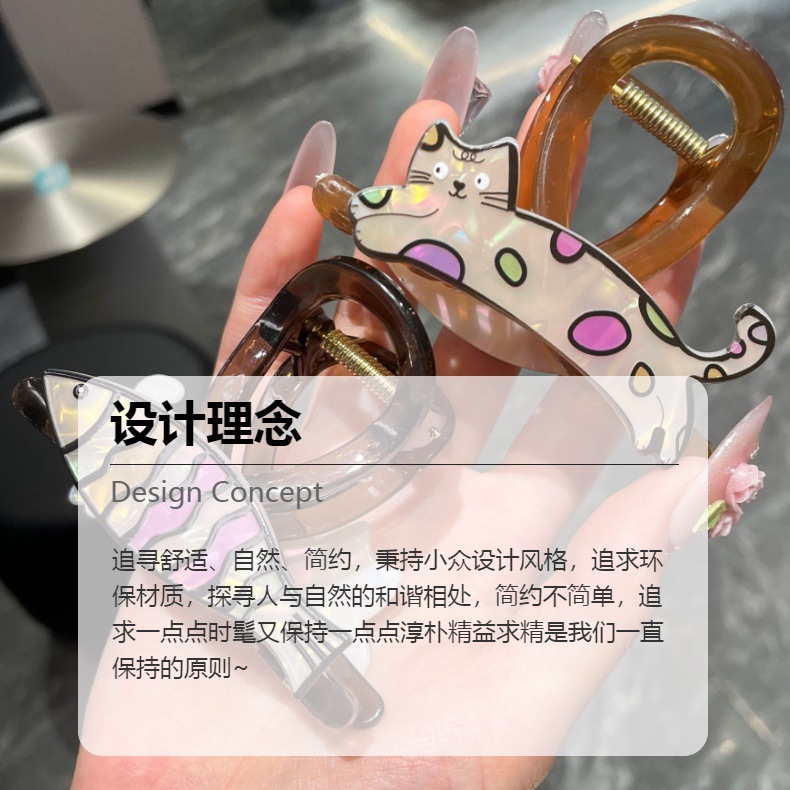 2024 새로운 진한 베이지 고양이 클립 한국 헤어 액세서리 달콤한 올 매치 헤어 클립 다시 머리 상어 클립 중간 여성스토어 가기